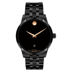 The Museum Classic is the purest interpretation of Movado's Museum Dial—an icon of modern design seen in art institutions around the world. A Swiss made self-winding movement drives this watch, powered by the motion of your wrist. This 40mm two-hand watch features a black lacquer dial, rose gold tone dauphine hands, and our signature dot at 12 o'clock.