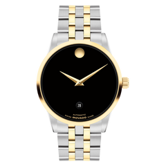 The Museum Classic is the purest interpretation of Movado's Museum Dial—an icon of modern design seen in art institutions around the world. A Swiss made self-winding movement drives this watch, powered by the motion of your wrist. This 40mm two-hand watch features a black lacquer dial, yellow gold tone dauphine hands, and our signature dot at 12 o'clock