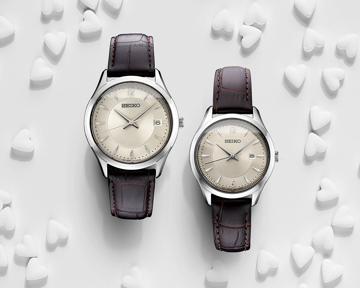 From the Essentials Collection. Offering classic dress/sport designs, the Essentials Collection provides the ideal solution for everyday wear. Crafted of stainless steel, this perfectly tailored watch features a patterned antique white dial with date calendar, as well as Arabic numerals and stick markers, for a superb blend of clarity and style. With brown leather strap and a sapphire crystal for superior scratch resistance. 10 bar, 100M Water Resistant
