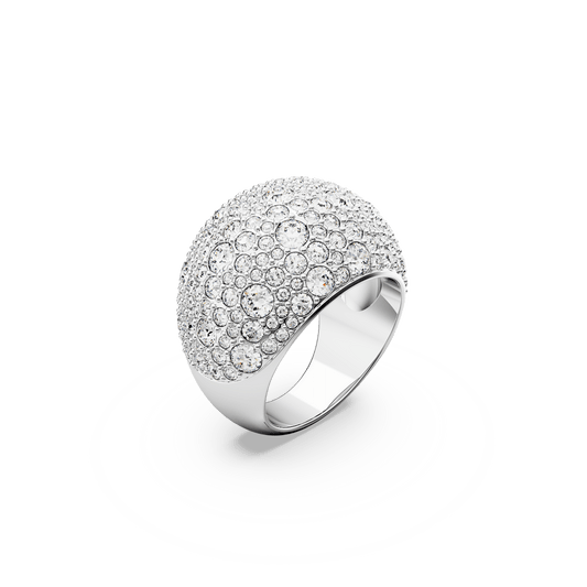 Hyperbola cocktail ring, Mixed cuts, White, Rhodium plated
