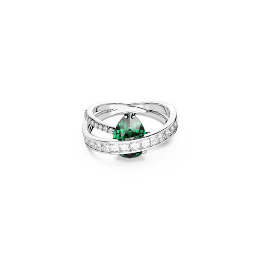 Hyperbola cocktail ring, Carbon neutral zirconia, Mixed cuts, Double bands, Green, Rhodium plated