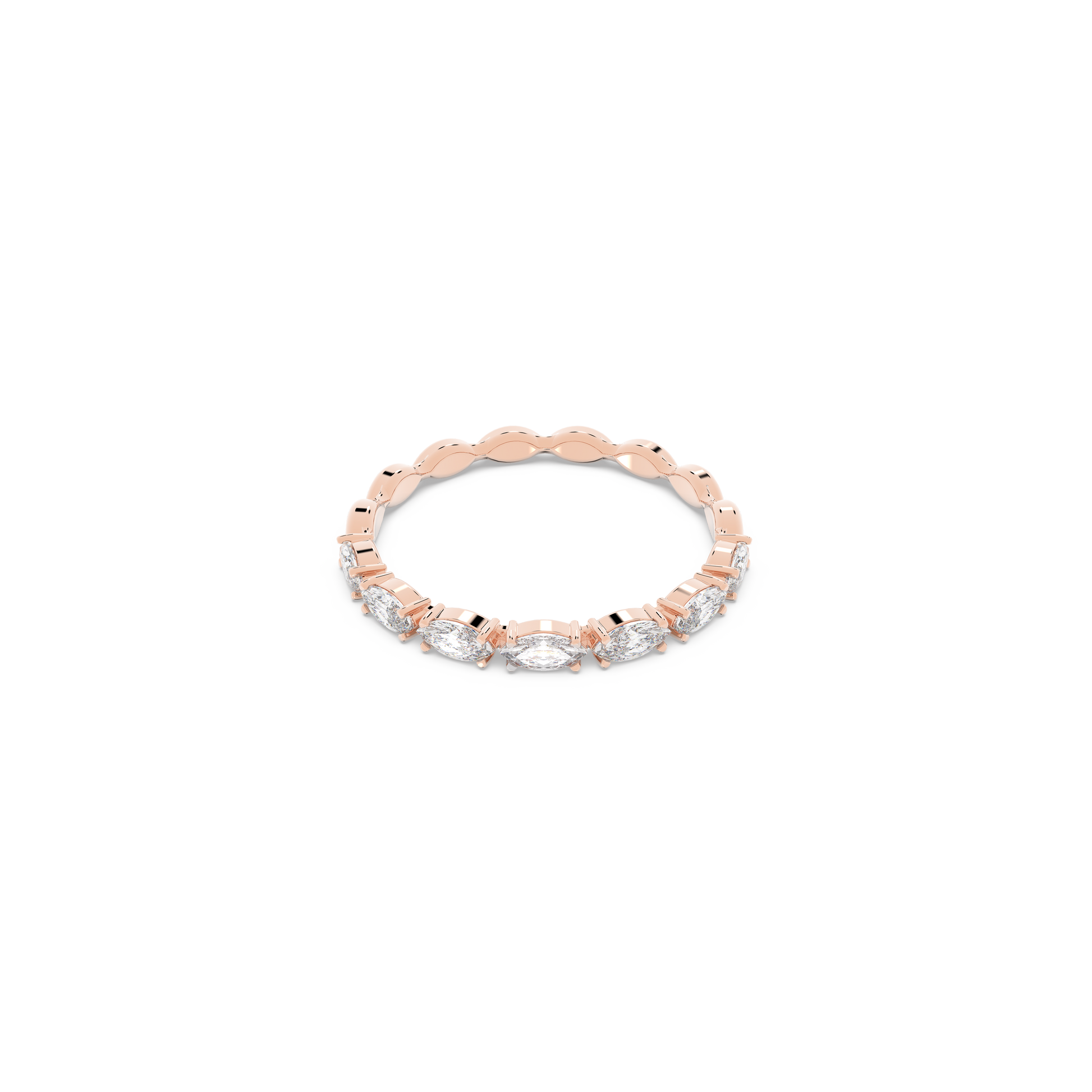 Add a note of minimalist luxury to your look with this gorgeous ring. The front half is embellished with sparkling marquise-shaped stones, making this rose gold-plated accessory is a lovely accent for everyday looks. Stacks beautifully or looks equally good worn alone.