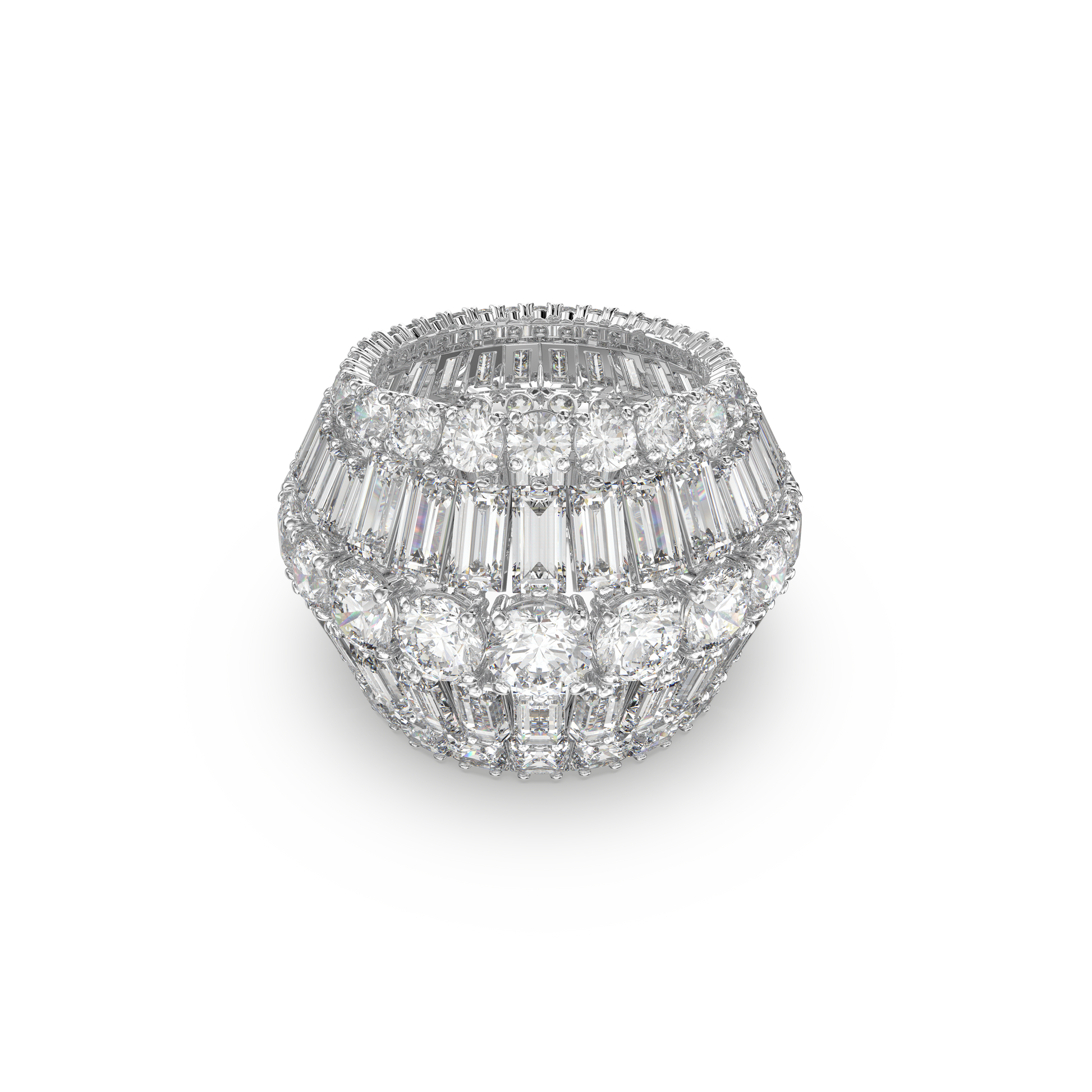 Swarovski Hyperbola cocktail ring, Mixed cuts, White, Rhodium plated