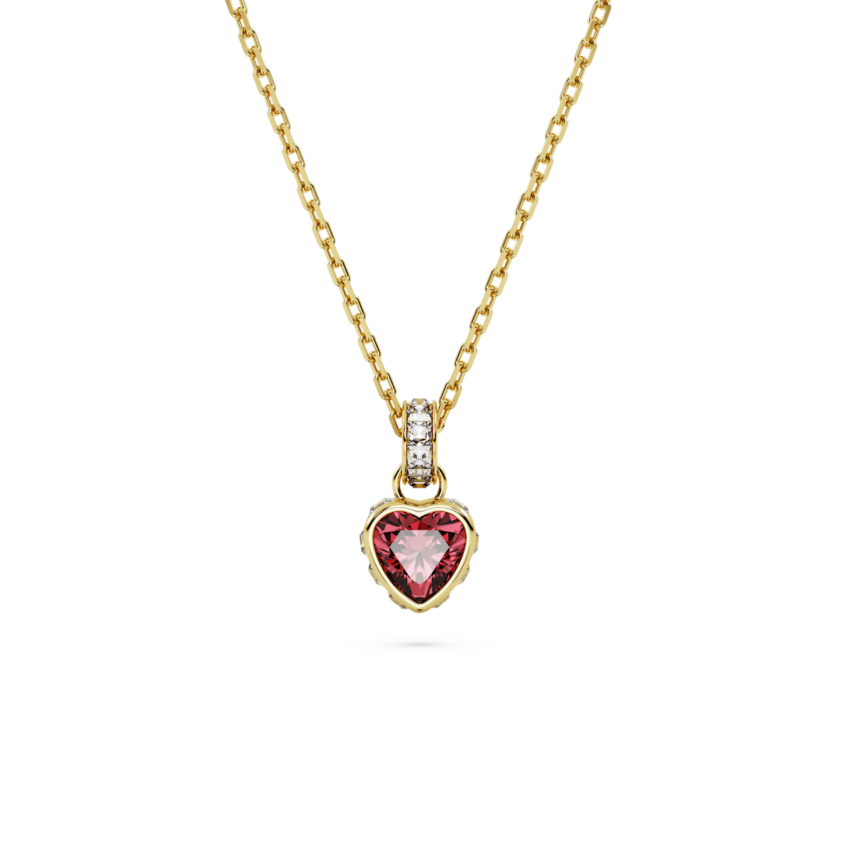 If you adore heart-shaped jewelry, this pendant from the Stilla family is essential for your collection. The red centerstone sits in a gold-tone plated surround enhanced with square clear crystals around the edges and the bail. Beautifully attached to a gold-tone plated chain with a round stone detail at the end and a 5cm elongation, this is a piece you can wear every day, making it a signature part of your style.