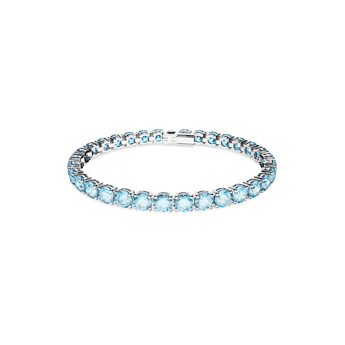 Surround your wrist in vibrant jewels with this glittering bracelet from the Matrix Tennis family. In perfectly formed fluidity, the design features a row of round stones in light aquamarine on a rhodium plated setting for a cool combination. Wear it alone, or pair it with other pieces from the Matrix Tennis family.
