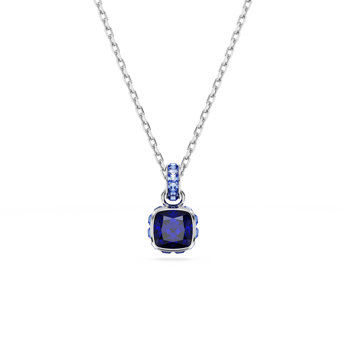 Birthstone pendant, Square cut, September, Blue, Rhodium plated