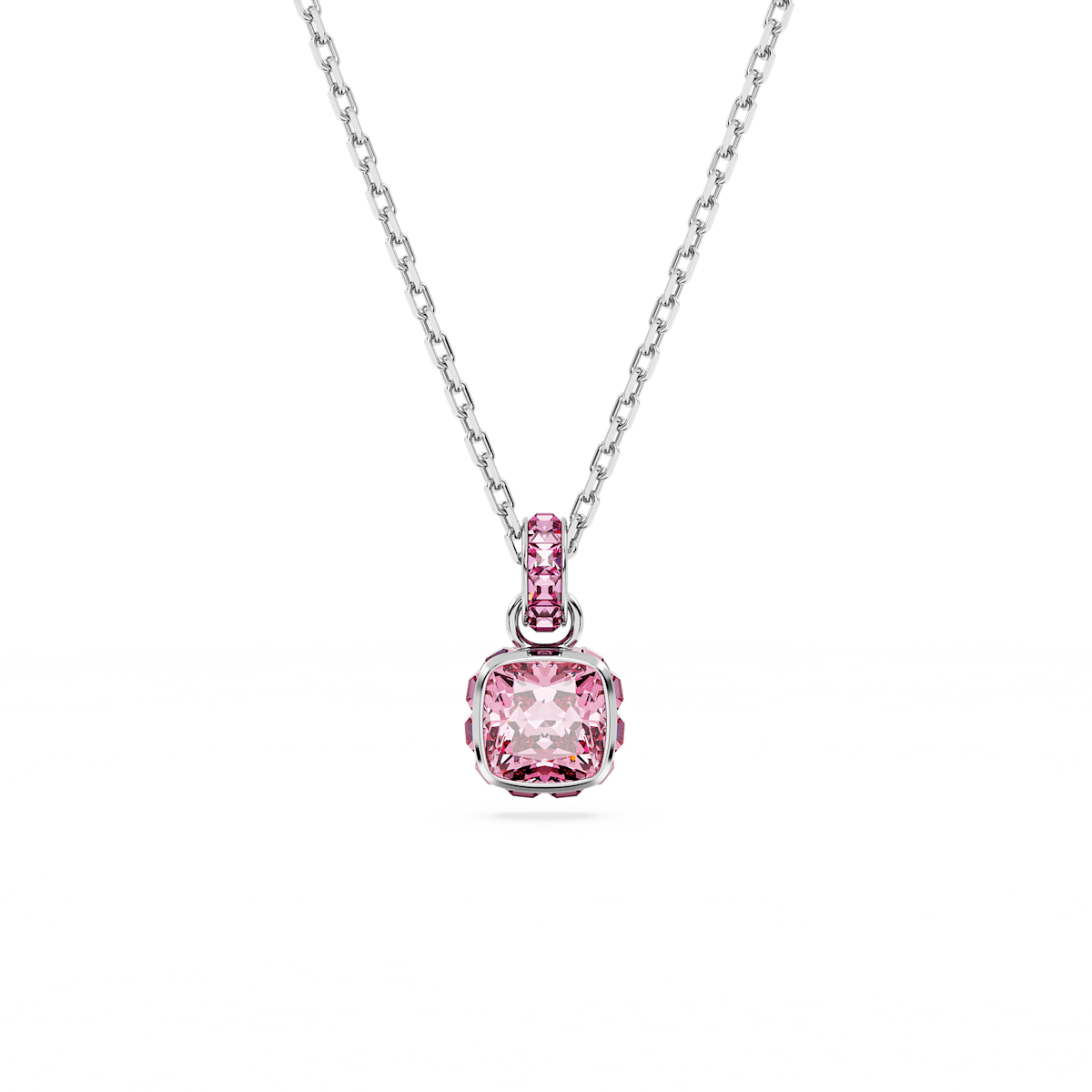 Birthstone pendant, Square cut, October, Pink, Rhodium plated