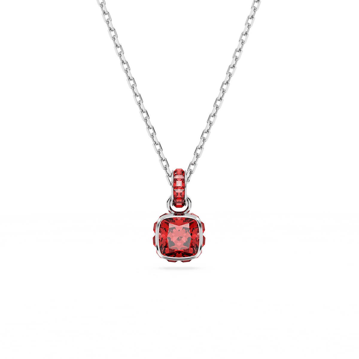 Birthstone pendant, Square cut, July, Red, Rhodium plated