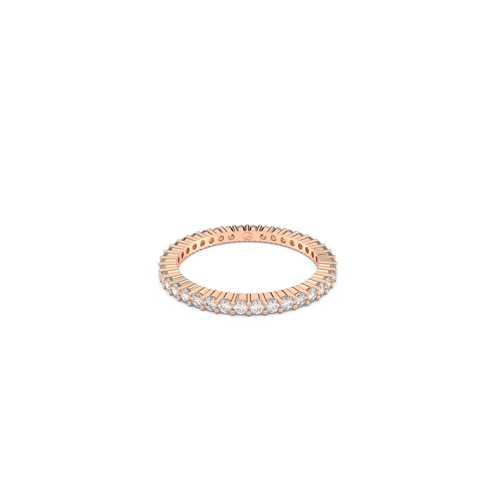 This Matrix Vittore ring is ideal for a subtle touch of glitter. It combines the warm pairing of clear round stones with a rose gold-tone finish, giving you a look that is fiery and luxurious. Designed to shine on all sides, you can stack this jewelry with other styles, such as an eye-catching cocktail ring for an effective contrast.