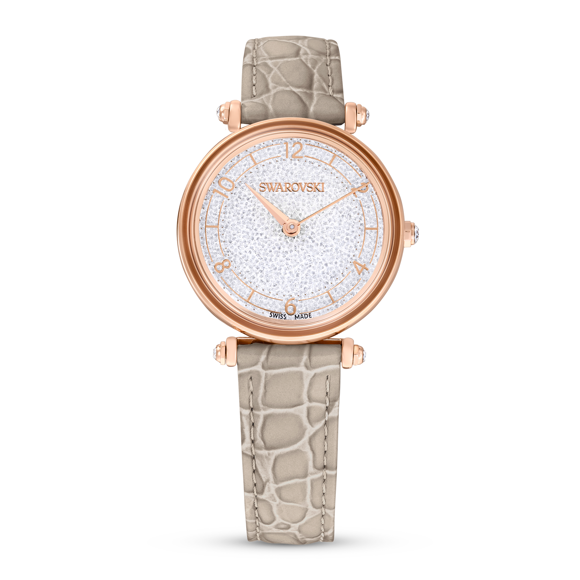 Swarovski Crystalline Wonder watch, Swiss Made, Leather strap, Beige, Rose gold-tone finish