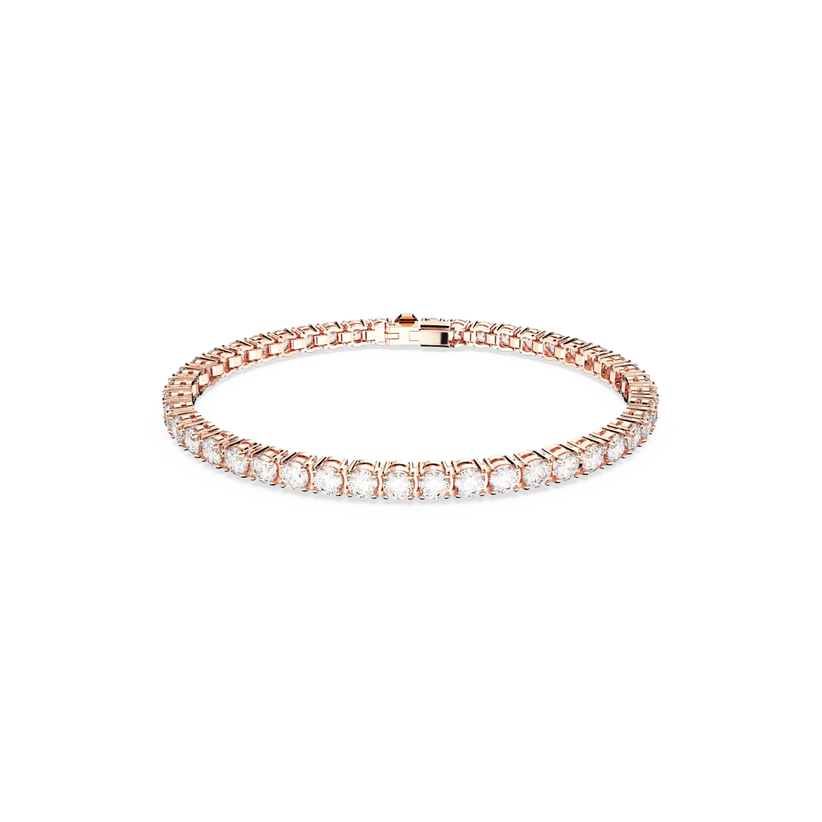 Matrix Tennis bracelet, Round cut, White, Rose gold-tone plated