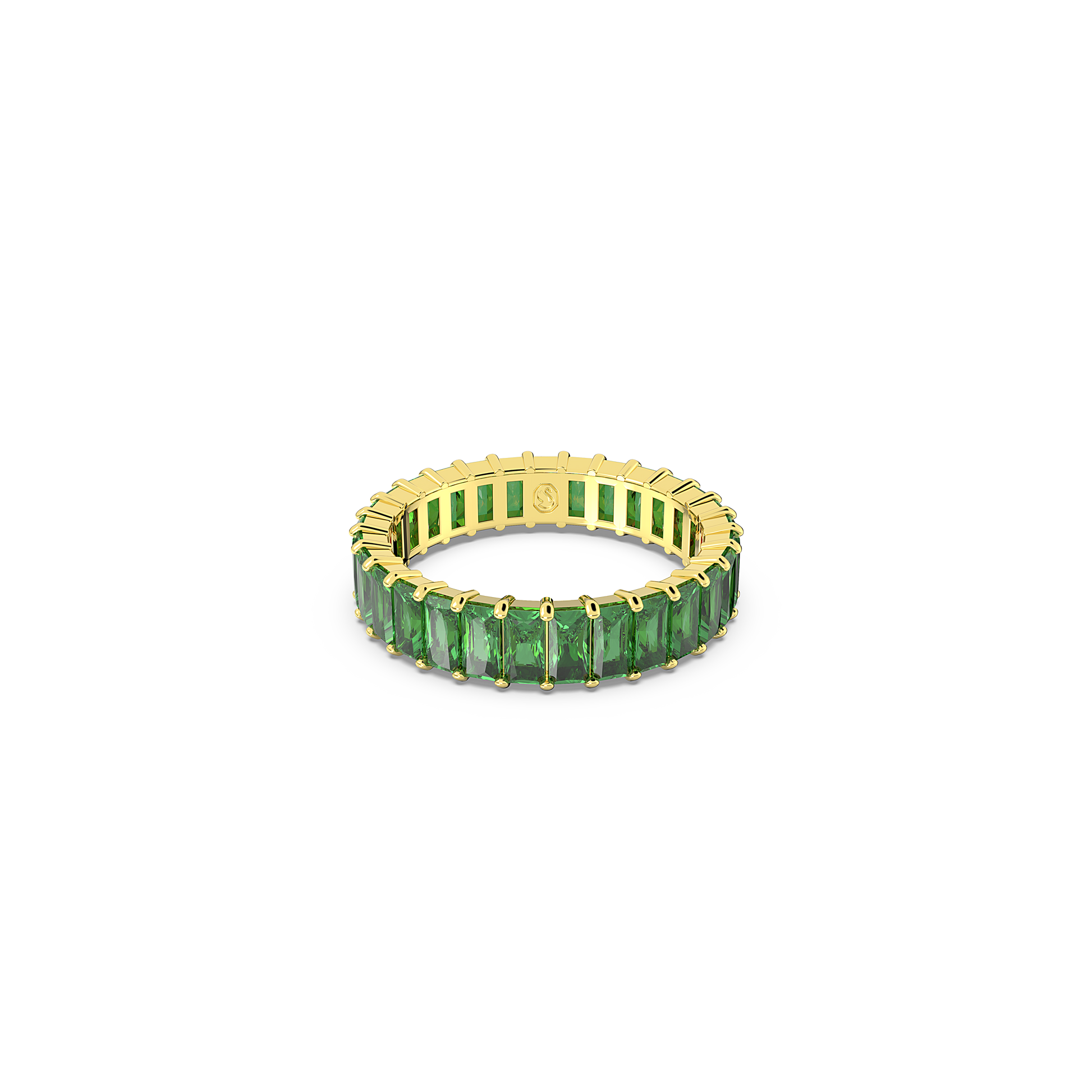 Crafted with a sleek circle of crystals, this Matrix ring will make a mesmerizing addition to your jewelry box. In a process that unites science and magic, deep green princess baguette-cut stones are set on a gold-tone plated band. This glowing accessory is perfect for stacking, allowing multiple combinations for all occasions.
