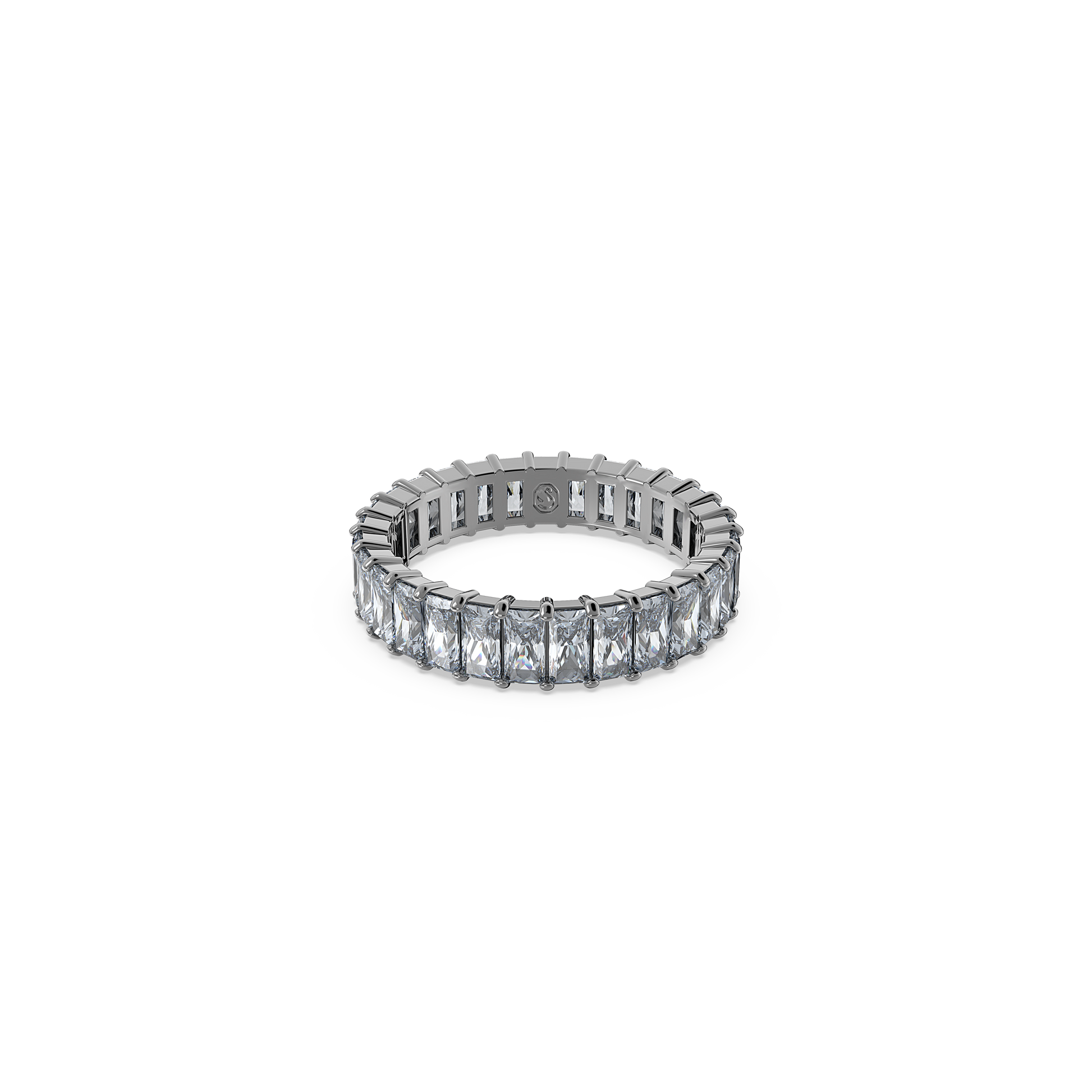 Combining a deep metallic look with eye-catching shine, this Matrix ring will make a versatile addition to your jewelry box. In a process that unites science and magic, grey princess baguette-cut stones are set on a ruthenium plated band. A captivating accessory that is perfect for stacking, allowing multiple combinations for all occasions.
