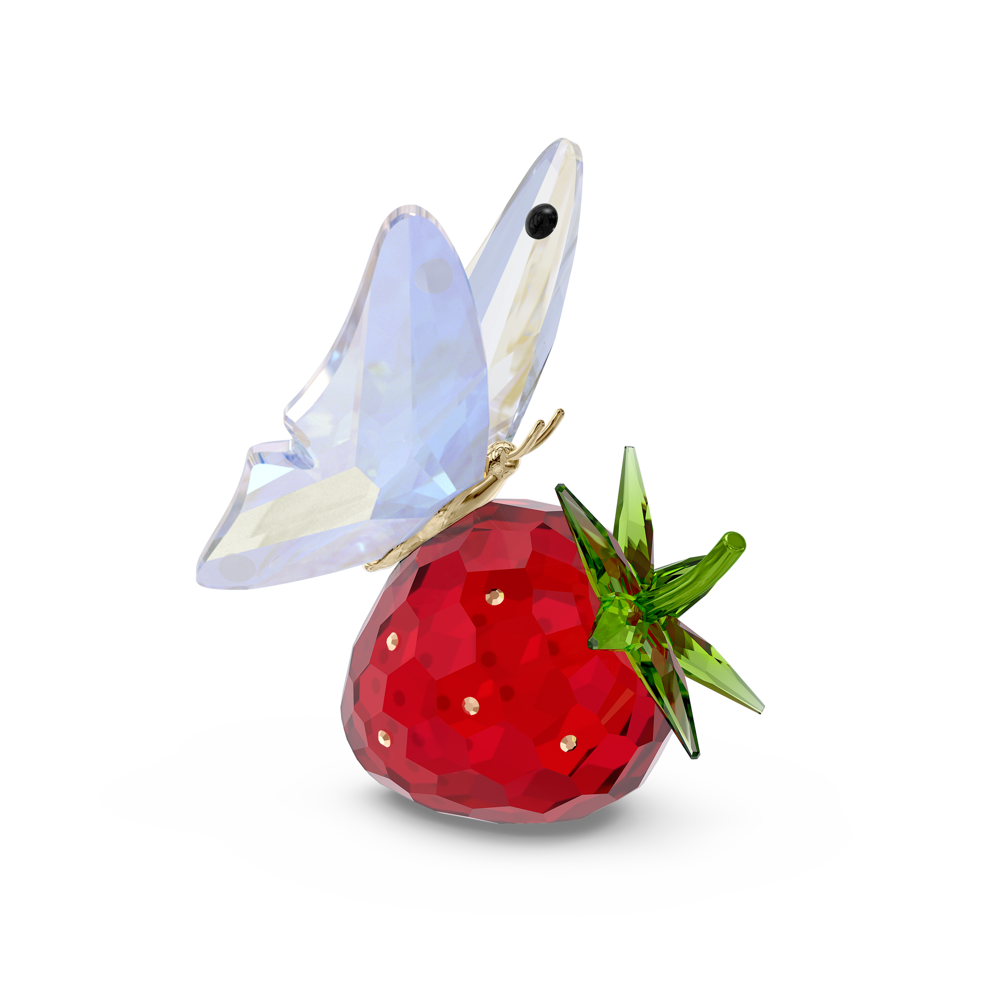 Witness a quiet moment in nature as a delicate butterfly lands on a ripe strawberry. This expertly crafted scene is produced in vivid color, with lacquered metal accents and 461 crystallized facets that capture every detail. Sweet and joyful, it’s a piece of home décor that will bring endless joy. Decoration object. Not a toy. Not suitable for children under 15.