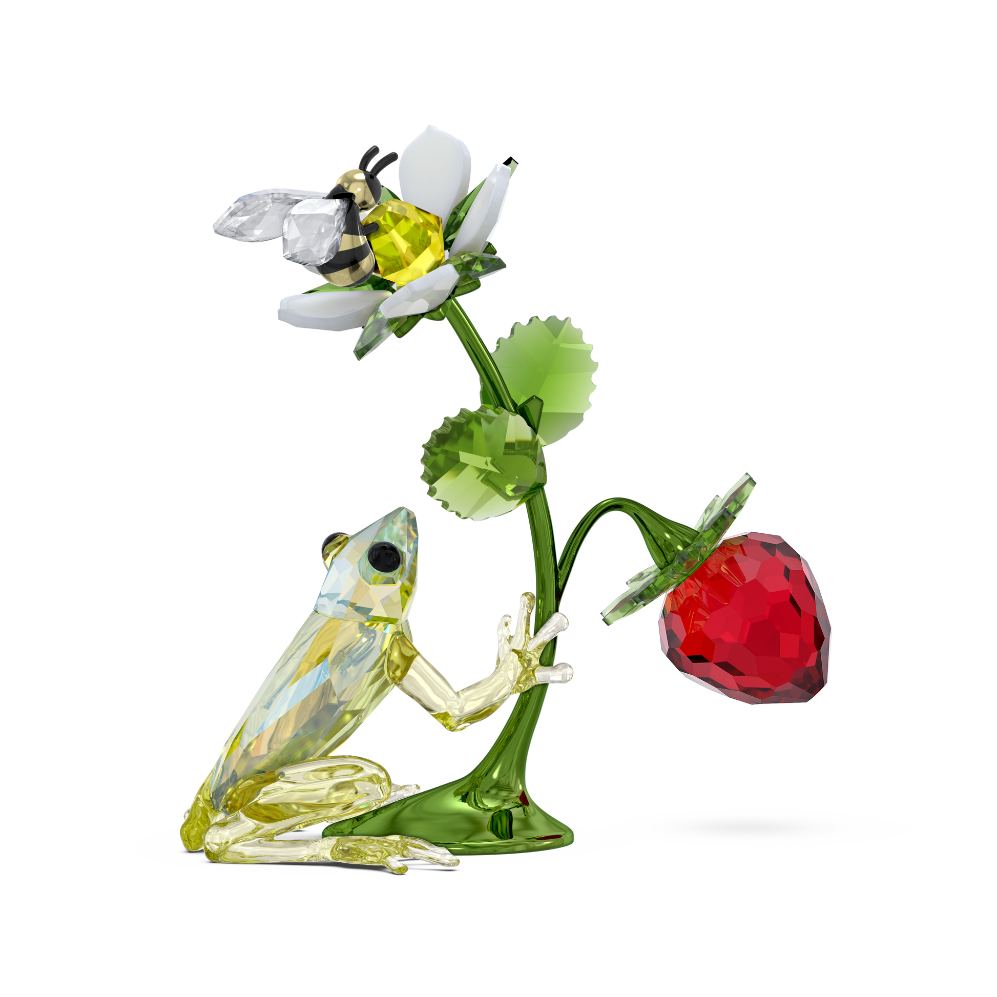 Filled with curiosity and wonder, this delightful scene captures the exact moment a tiny frog discovers a strawberry branch in the garden. This idyllic interaction between flora and fauna also features a busy bee settled atop the flower, as well as delicate leaves and discreet touches of luminous lacquered metal. It’s crafted with 424 facets and is certain to bring the joys of the natural world into your home. Decoration object. Not a toy. Not suitable for children under 15.