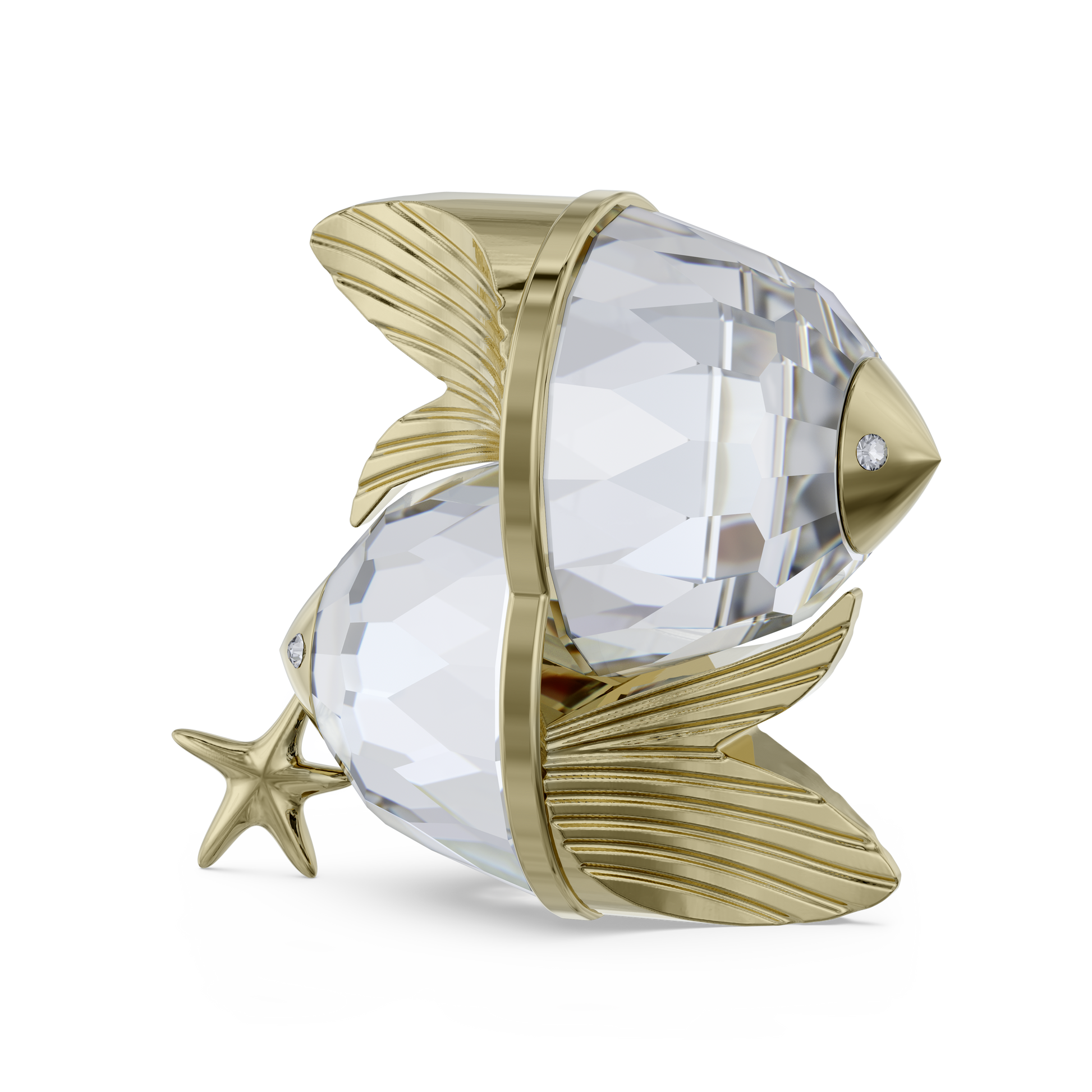 Taking notes from the cosmos, this meditative Pisces figurine is a wondrous tribute to the zodiac. The astrological design combines precision cutting with engraved gold-tone metal, featuring 99 facets that represent two fish and a small starfish. Gift this special piece to yourself or someone who is celebrating their birthday. Decoration object. Not a toy. Not suitable for children under 15.