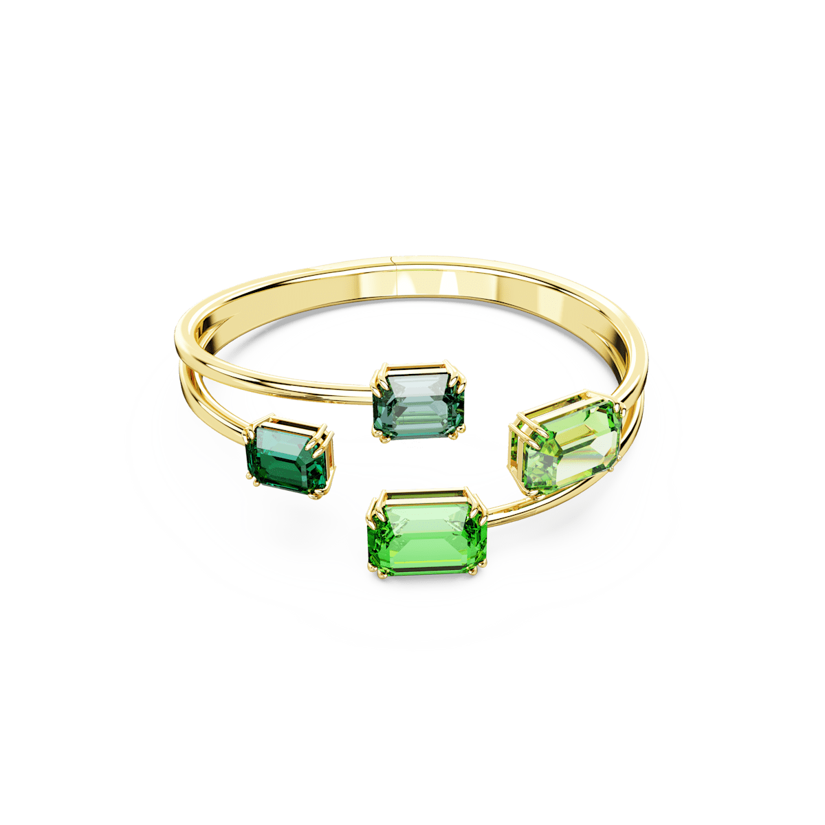 With its own dramatic sense of style, this distinctive Millenia bangle is perfect for self-expression. The gold-tone plated design exudes boldness with four individual strands that are each set with an octagonal stone in a different shade of green. Wear it solo or stacked with other designs from the Millenia family.