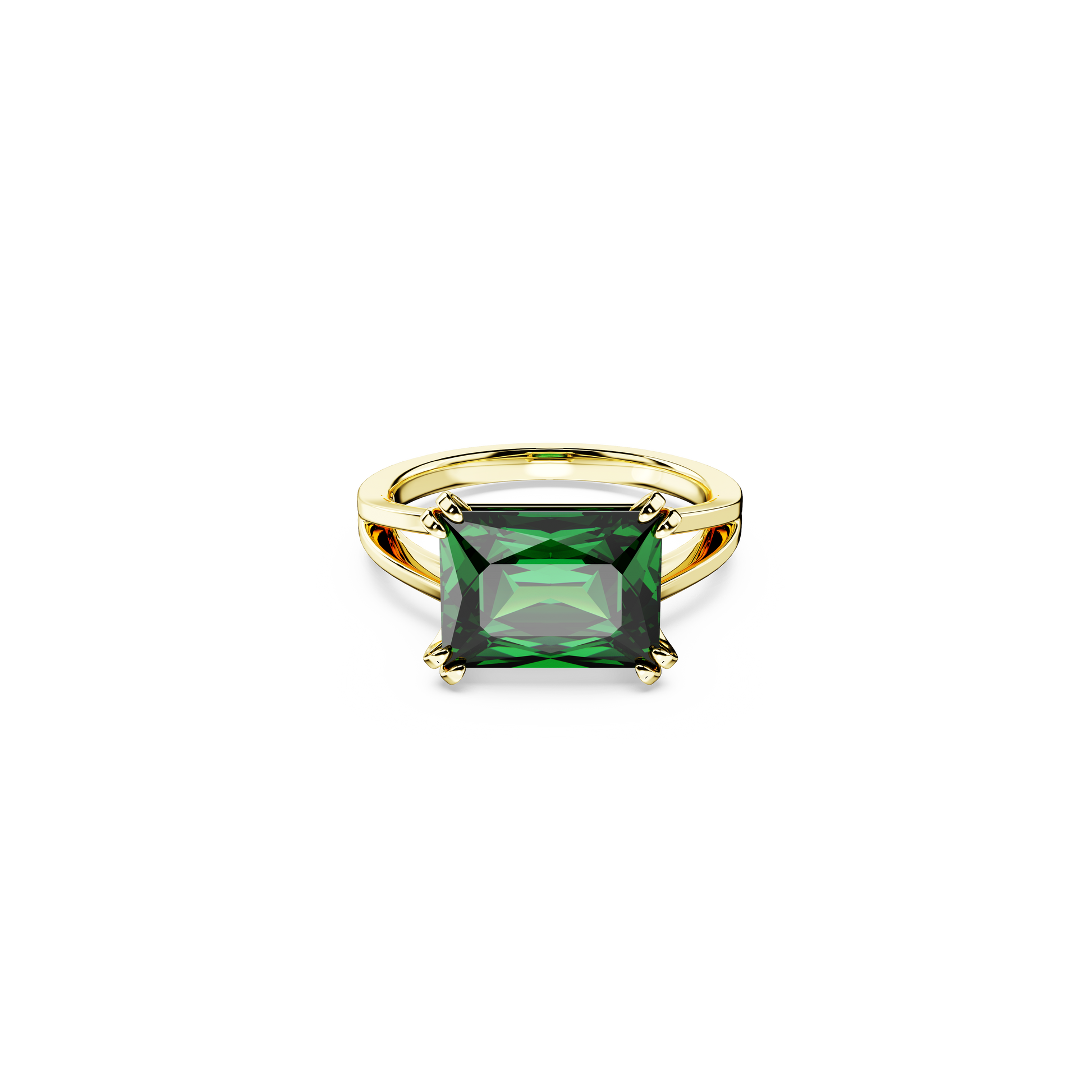 Swarovski Stilla cocktail ring, Rectangular cut, Green, Gold-tone plated