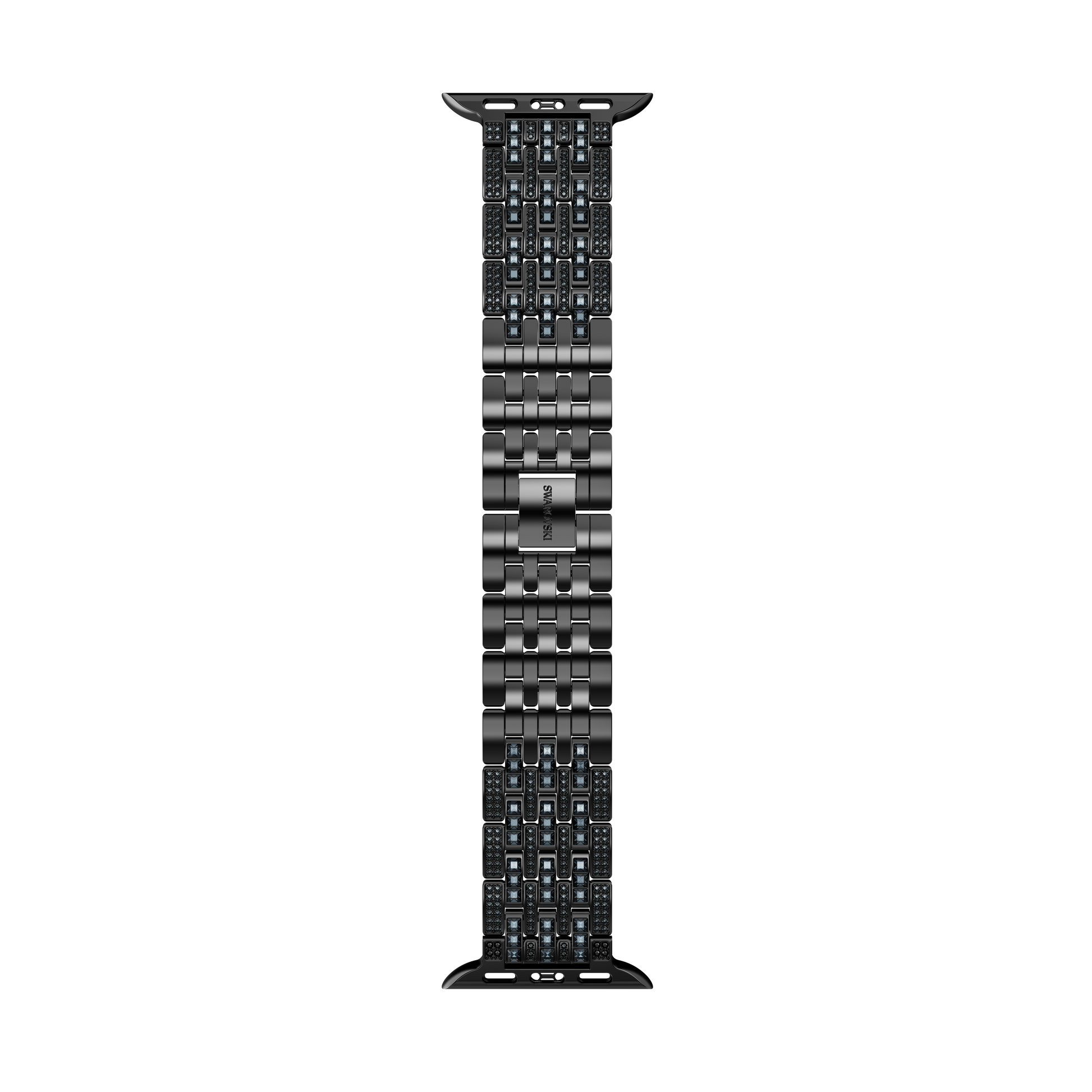 Keep time in style with this striking strap crafted for compatibility with Apple Watch®. The eye-catching design features PVD black tone, fully embellished with silver night crystals. Style with your Swarovski jewelry. This strap suits Apple Watches® sized 40mm or 41mm, including Series 4 - 9 and SE. Apple Watch® is a trademark of Apple Inc. This product is delivered with a standard size bracelet and two additional links, enabling it to be made longer or shorter with the help of our instore staff.