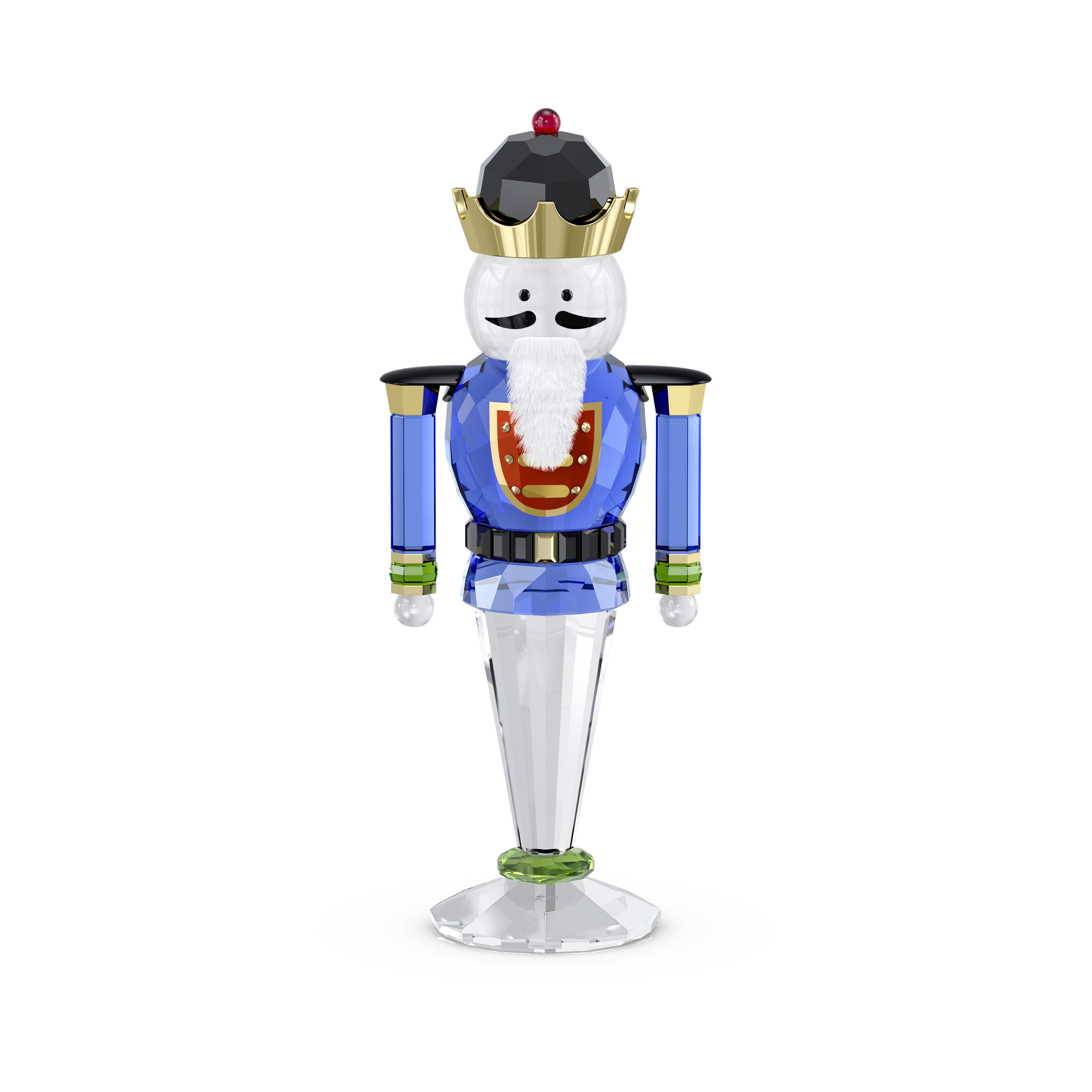 Inspired by one of the season’s most beloved characters, this large, crystallized figurine exudes holiday cheer. Crafted with 552 facets, the Nutcracker is dressed in a blue coat with delicate buttons, detailed sleeves with green cuffs, and a dazzling belt. Together with a white fabric beard and metallic accents, the overall effect is one of exceptional savoir-faire. Place this Nutcracker anywhere in your home as a nod to seasonal tradition. Decoration object. Not a toy. Not suitable for children under 15.