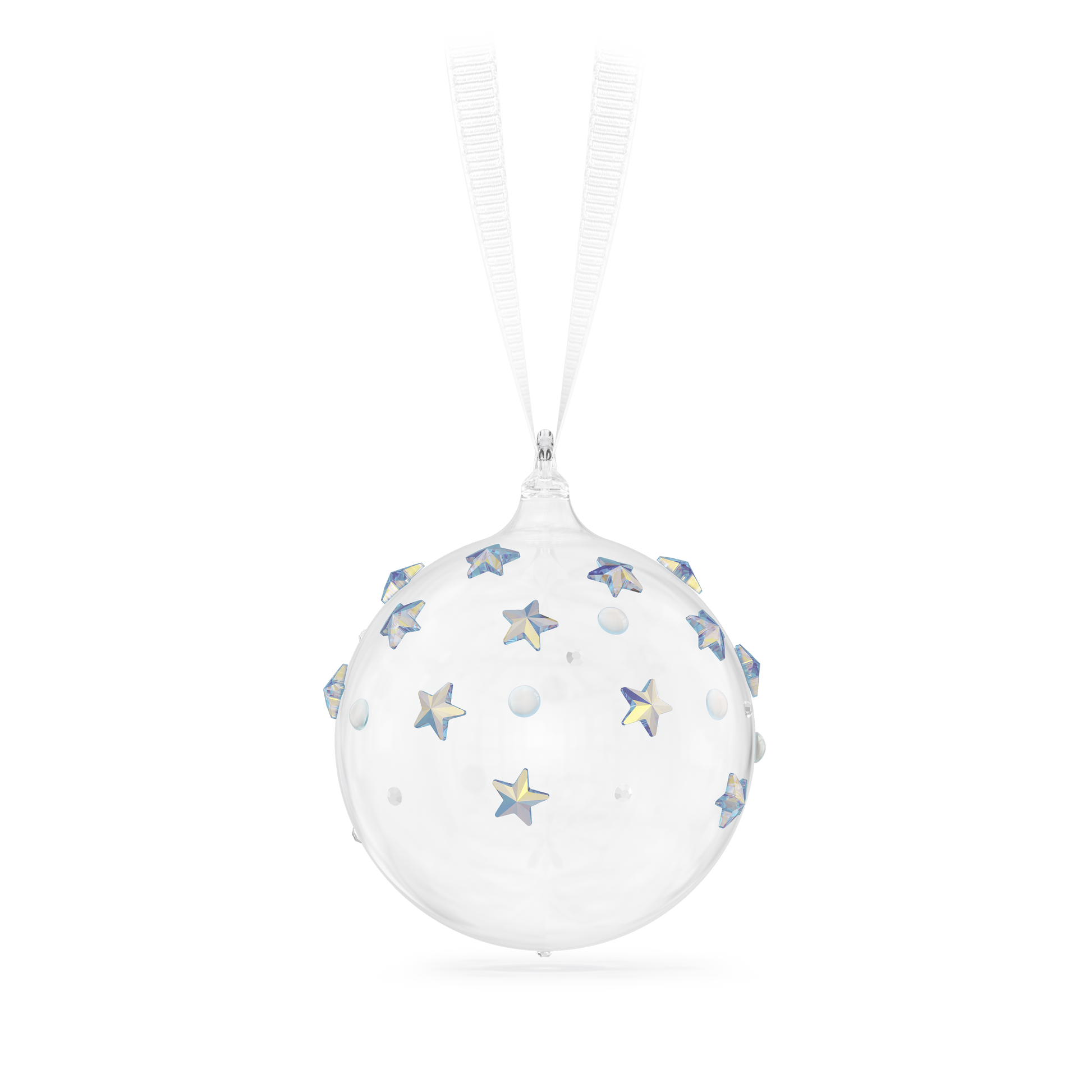 For the first time, Swarovski has crafted a miniature version of its traditional ball ornament. The immaculate glass design is enriched with faceted and unfaceted round crystals as well as 22 stars produced with the mesmerizing Aurora Borealis effect. In total, the ornament contains 473 facets, while its white grosgrain ribbon is connected to a silver-tone metal attachment. Display this piece in your home to revel in its delicate beauty. Decoration object. Not a toy. Not suitable for children under 15.