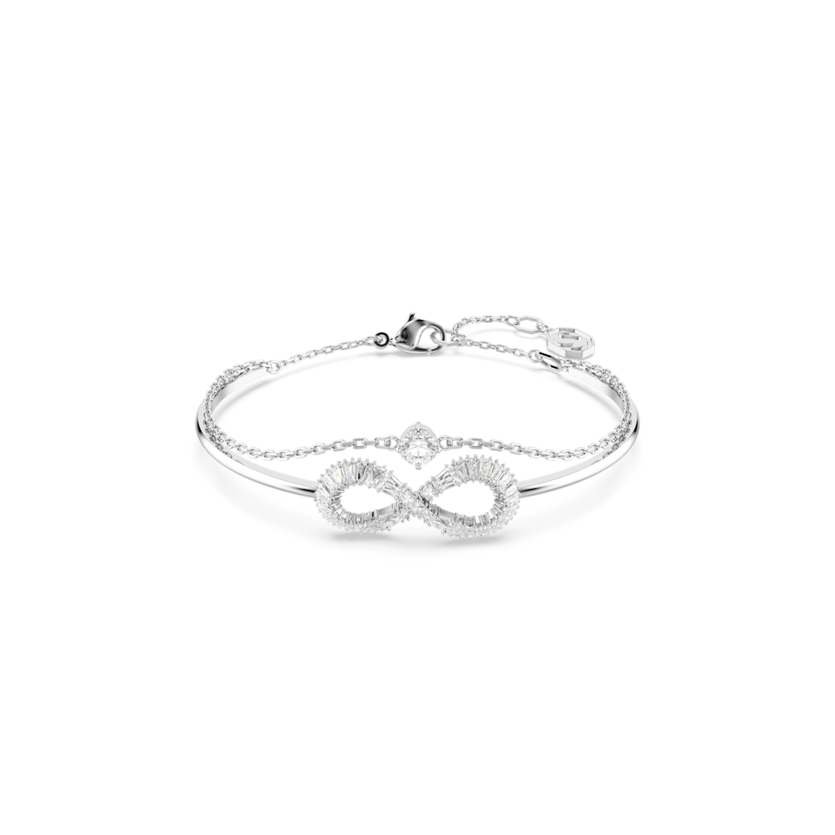Hyperbola bangle, Infinity, White, Rhodium plated