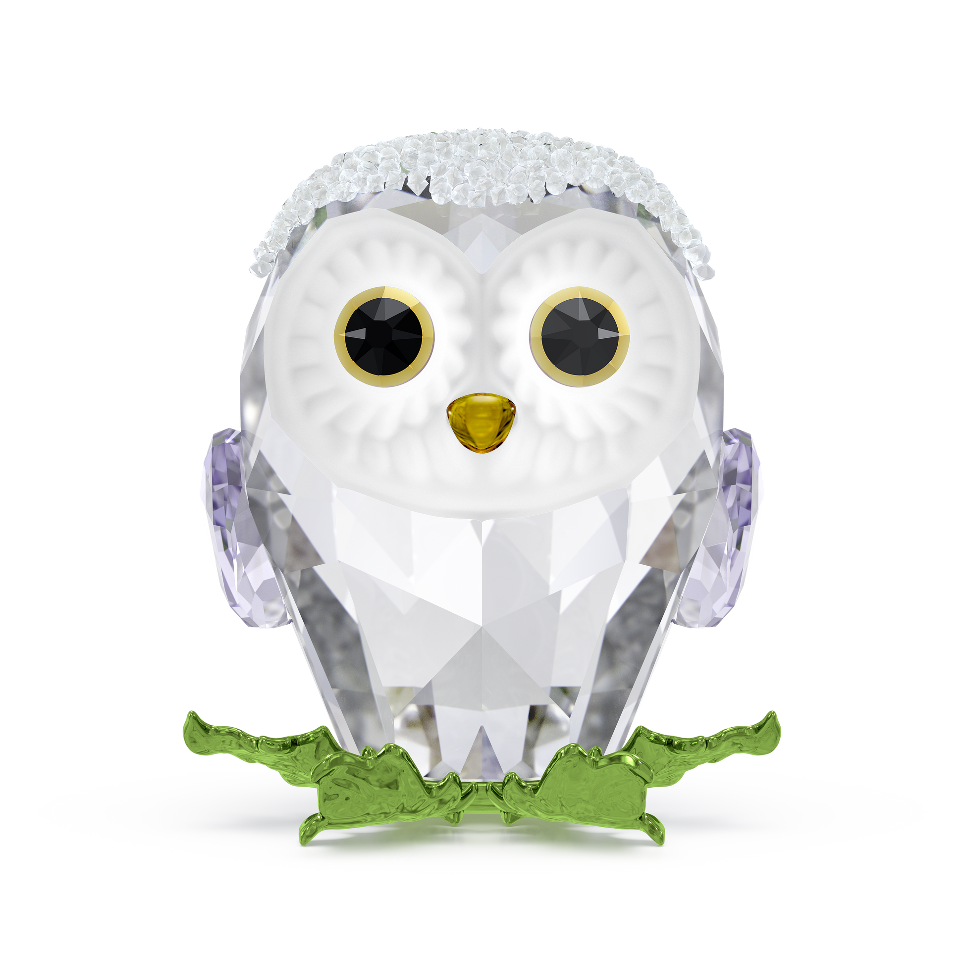 With its bright wide eyes and snow-covered head, this baby owl is irresistibly charming. Inspired by the Idyllia family, the ornament is crafted from 226 facets and approximately 420 crystal rocks. The owl sits atop a branch that is formed from metal with a green surface finish. An enchanting piece that is sure to bring joy to your home décor. Decoration object. Not a toy. Not suitable for children under 15.