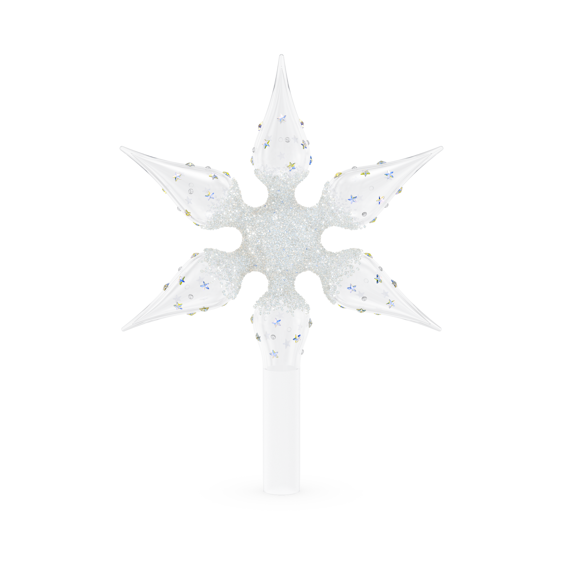 Designed to take pride of place at the top of your tree, this shimmering star is the ultimate holiday centerpiece. To create a brilliant burst of light, Swarovski has decorated the glass star with approximately 4,000 crystal rocks and 56 smaller stars produced with the mesmerizing Aurora Borealis effect. In total, the ornament features 1,105 radiant facets, while the frosted stem elegantly covers the top of the tree. An eye-catching piece that you’ll treasure for years to come. Decoration object. Not a toy. Not suitable for children under 15.
