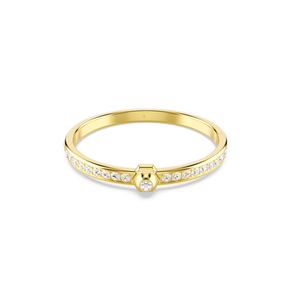 This Numina bangle delivers dazzling style with an industrial edge. The beautifully engineered piece is crafted with gold-tone plating and features an adornment of clear round crystals and a captivating central stud. Wear it to give your look a bold and contemporary twist.