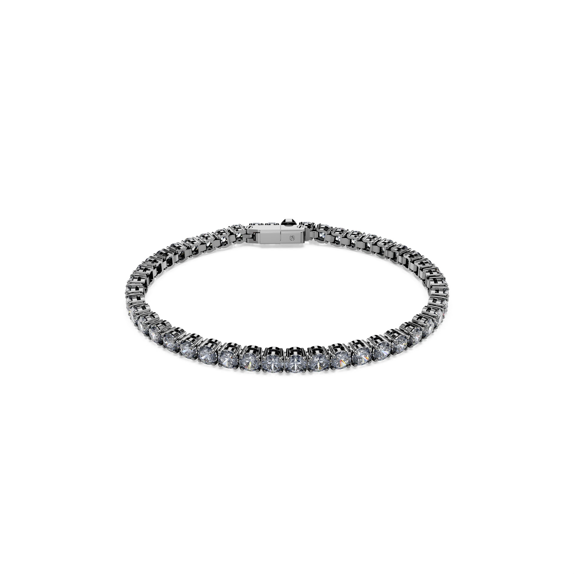 Discover the powerful evolution of the classic tennis bracelet. This ruthenium plated design features a full surround of silvery gray Swarovski Zirconia and an easy-to-use Matrix Tennis closure. Adding intrigue to any look, this distinctive piece is an ideal way to dramatize your style.