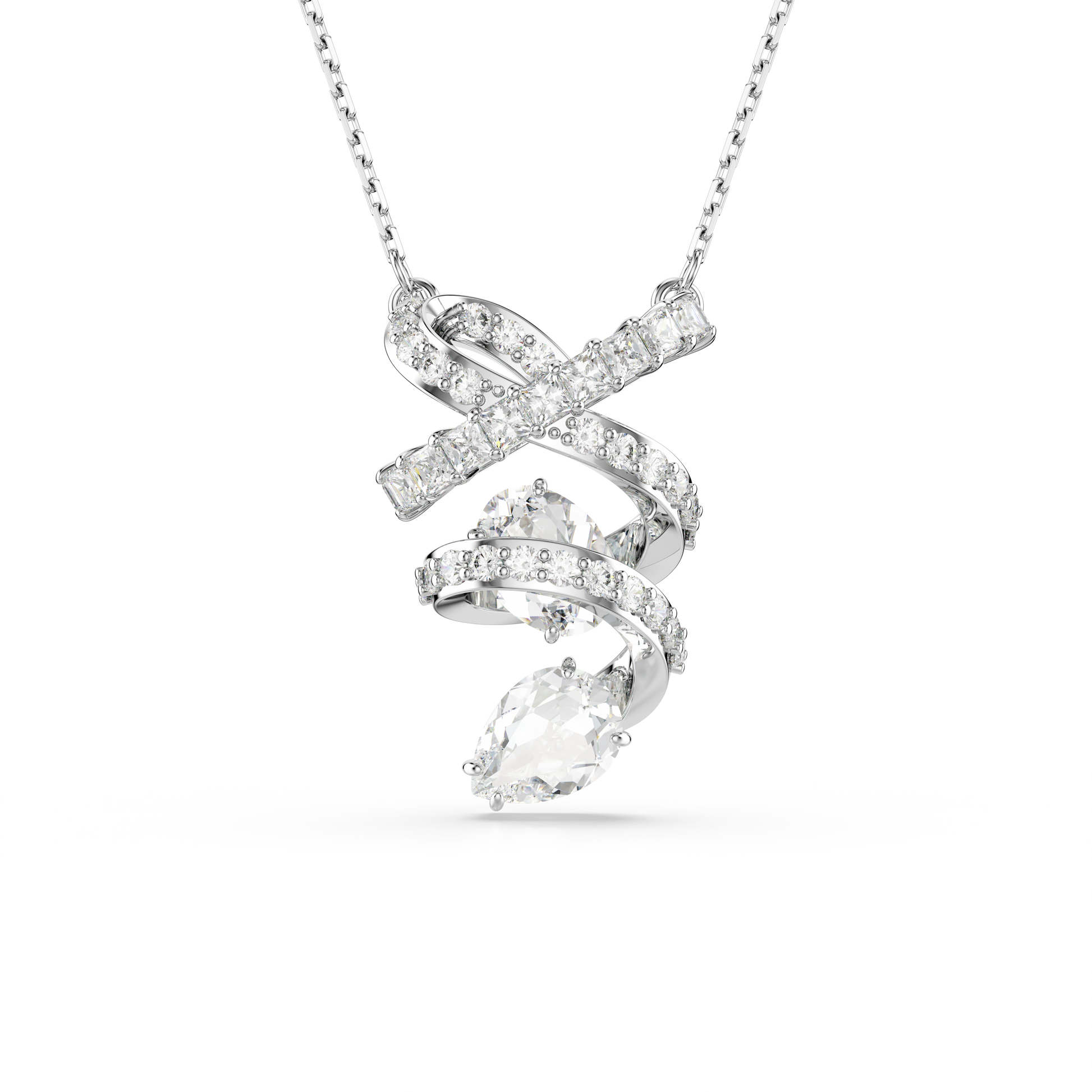 Swarovski Hyperbola pendant, Mixed cuts, White, Rhodium plated