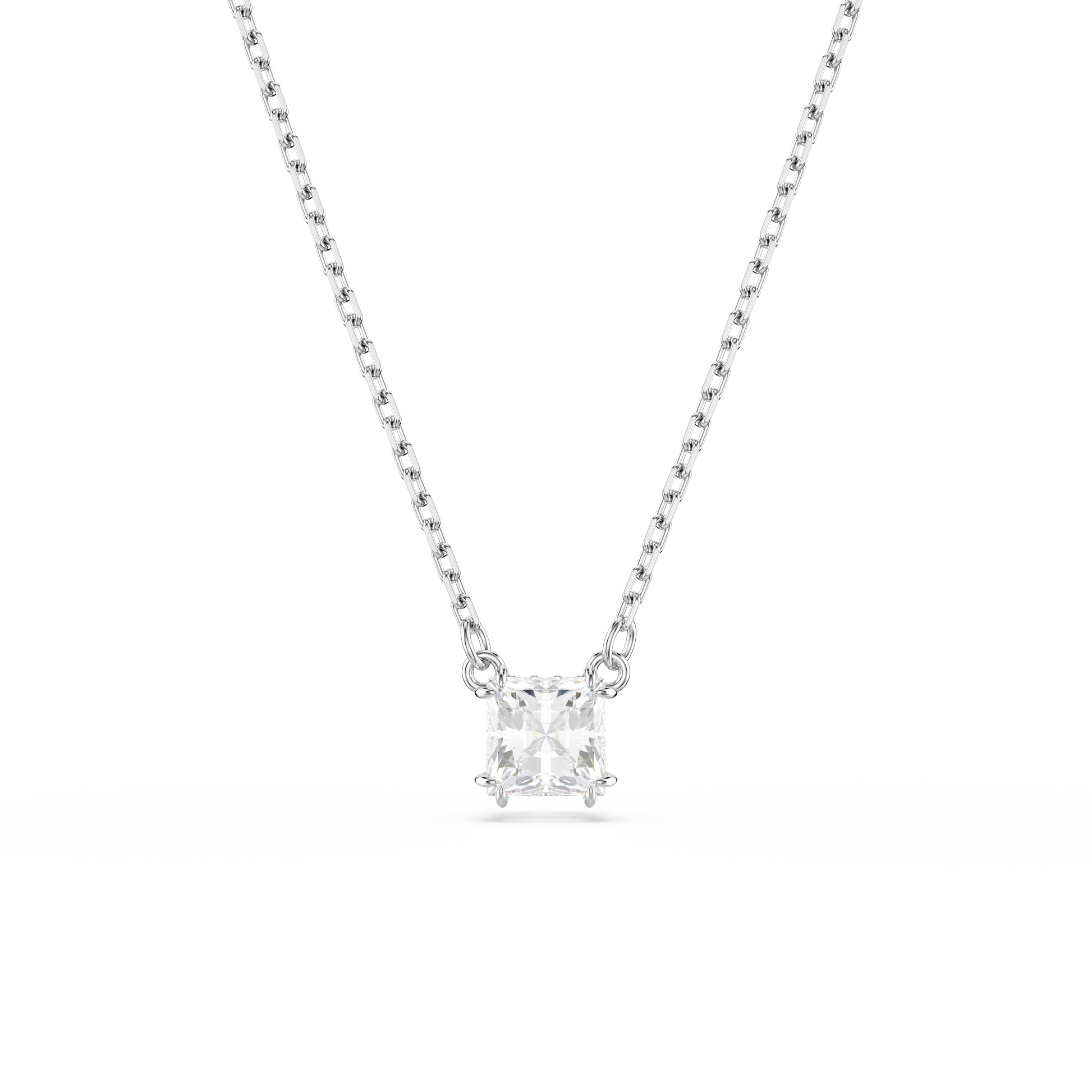Swarovski Stilla Attract pendant, Square cut, White, Rhodium plated