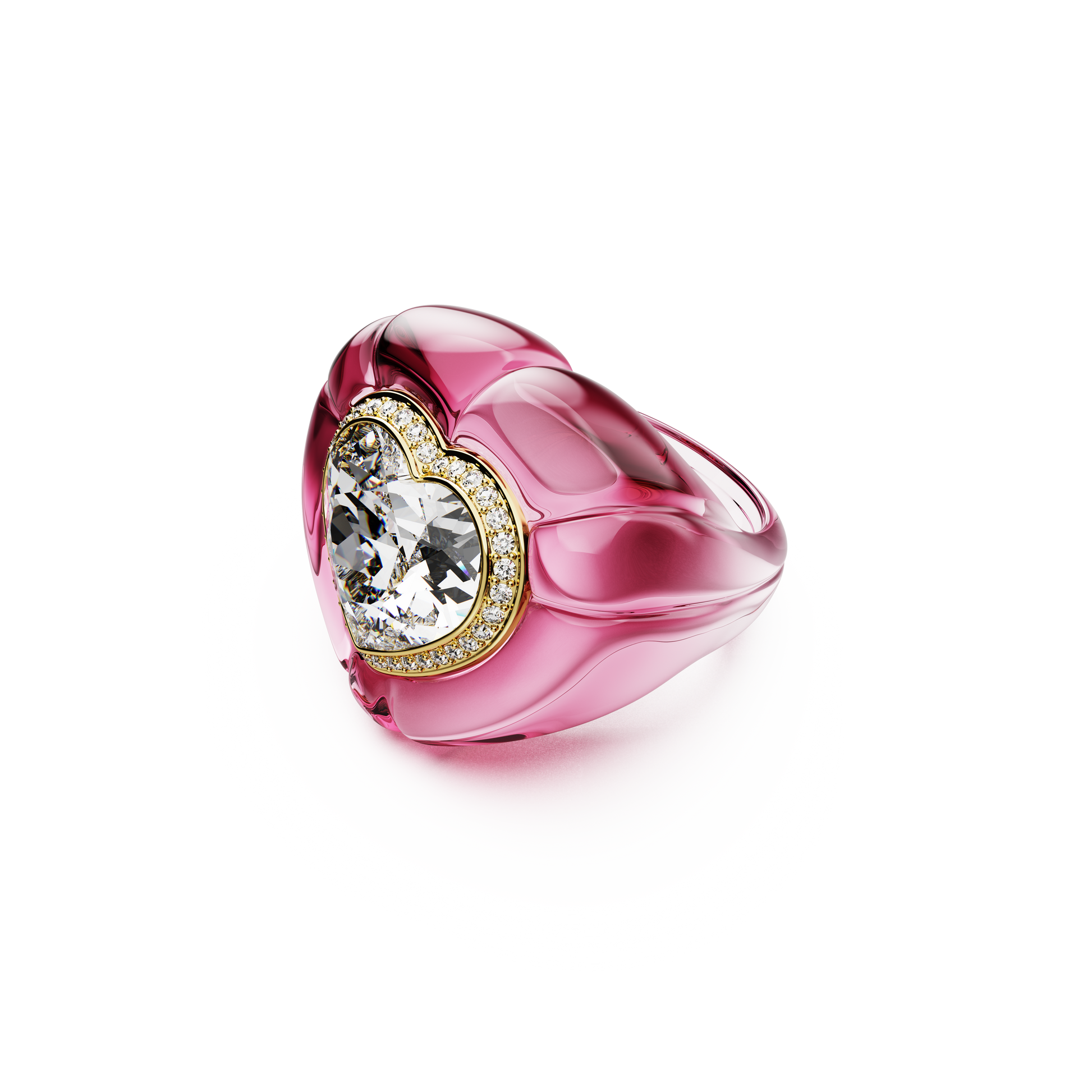 Swarovski Dulcis cocktail ring, Heart cut, Pavé, Heart, Pink