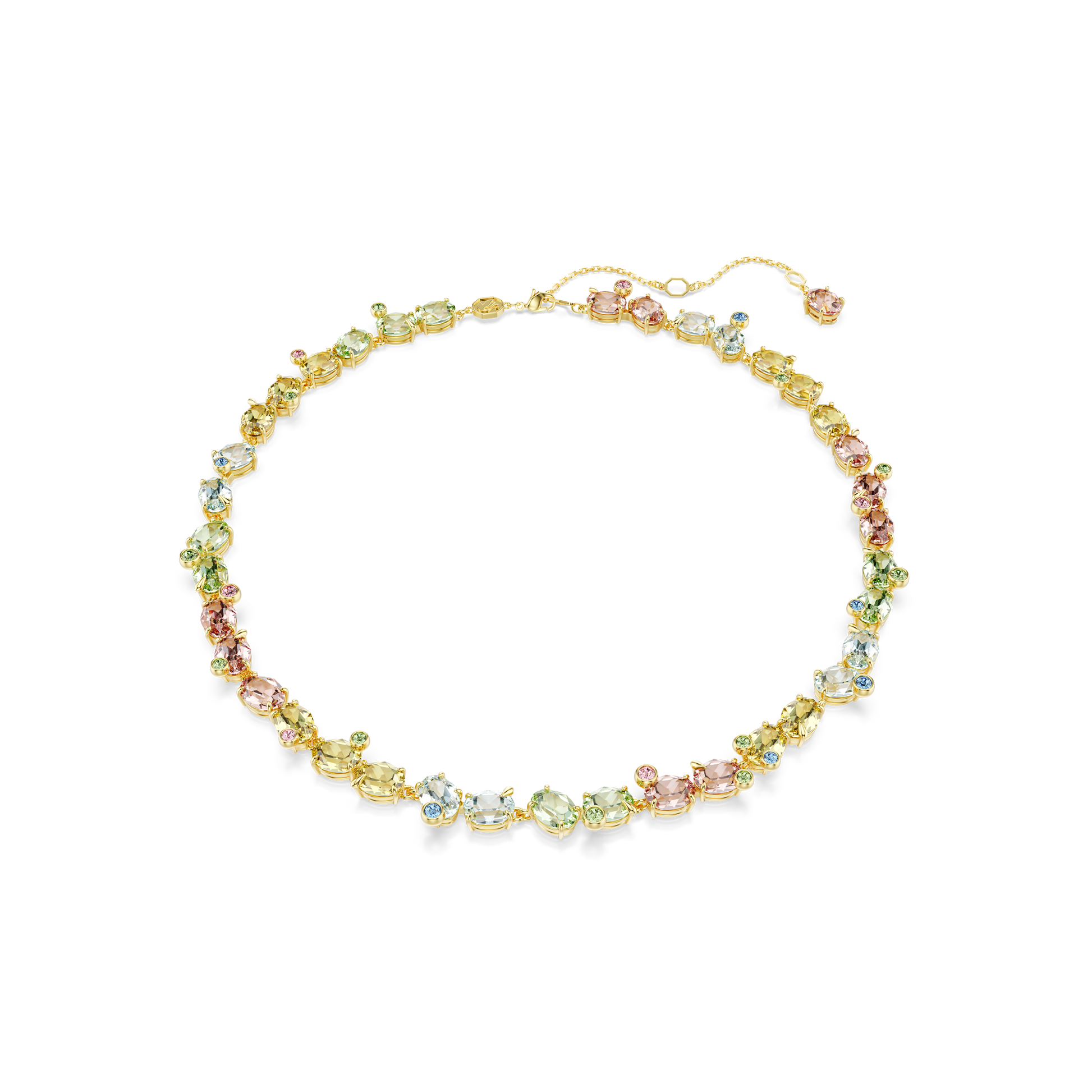 Swarovski Gema Tennis necklace, Mixed cuts, Multicolored, Gold-tone plated