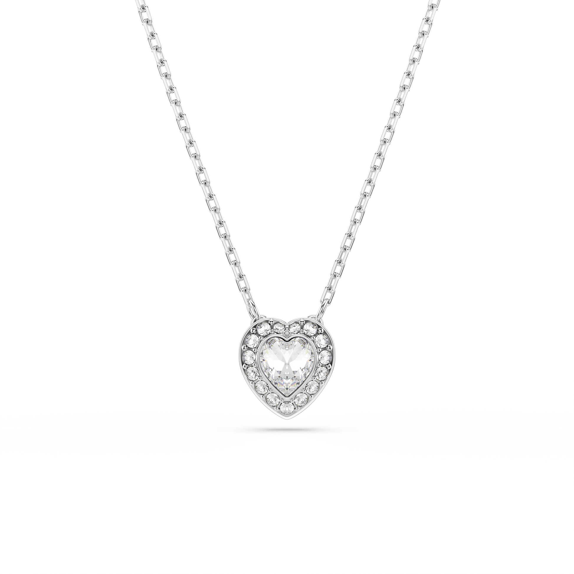 Follow your heart and let romance shine with this radiant Swarovski pendant. Suspended from a delicate chain, the rhodium plated design features a heart-shaped crystal, which is surrounded by a glittering halo of clear pavé. Pair it with the matching studs for a radiant gift of love.