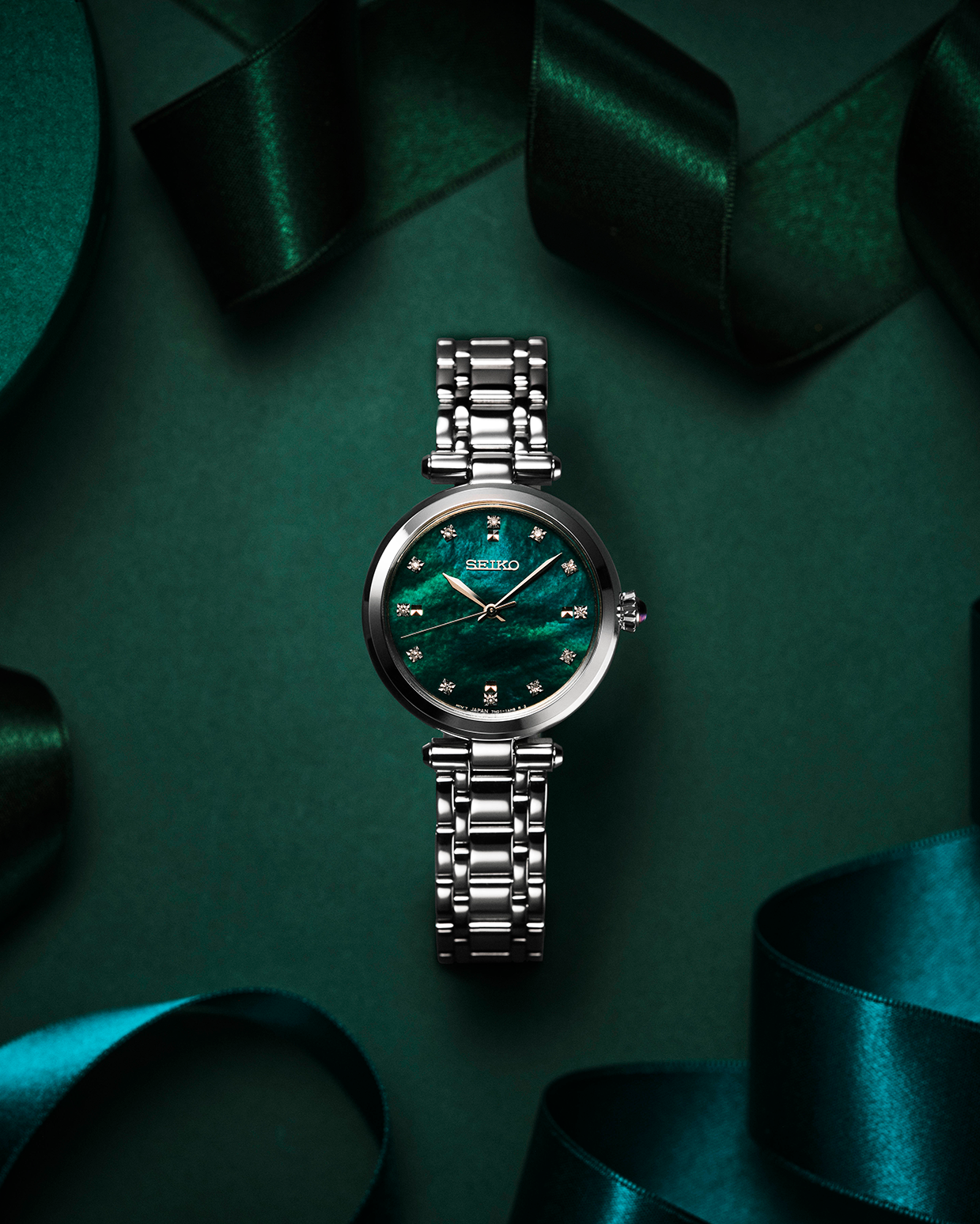 SEIKO Women's Stainless Steel Green Dial Diamond WATCH SRZ535