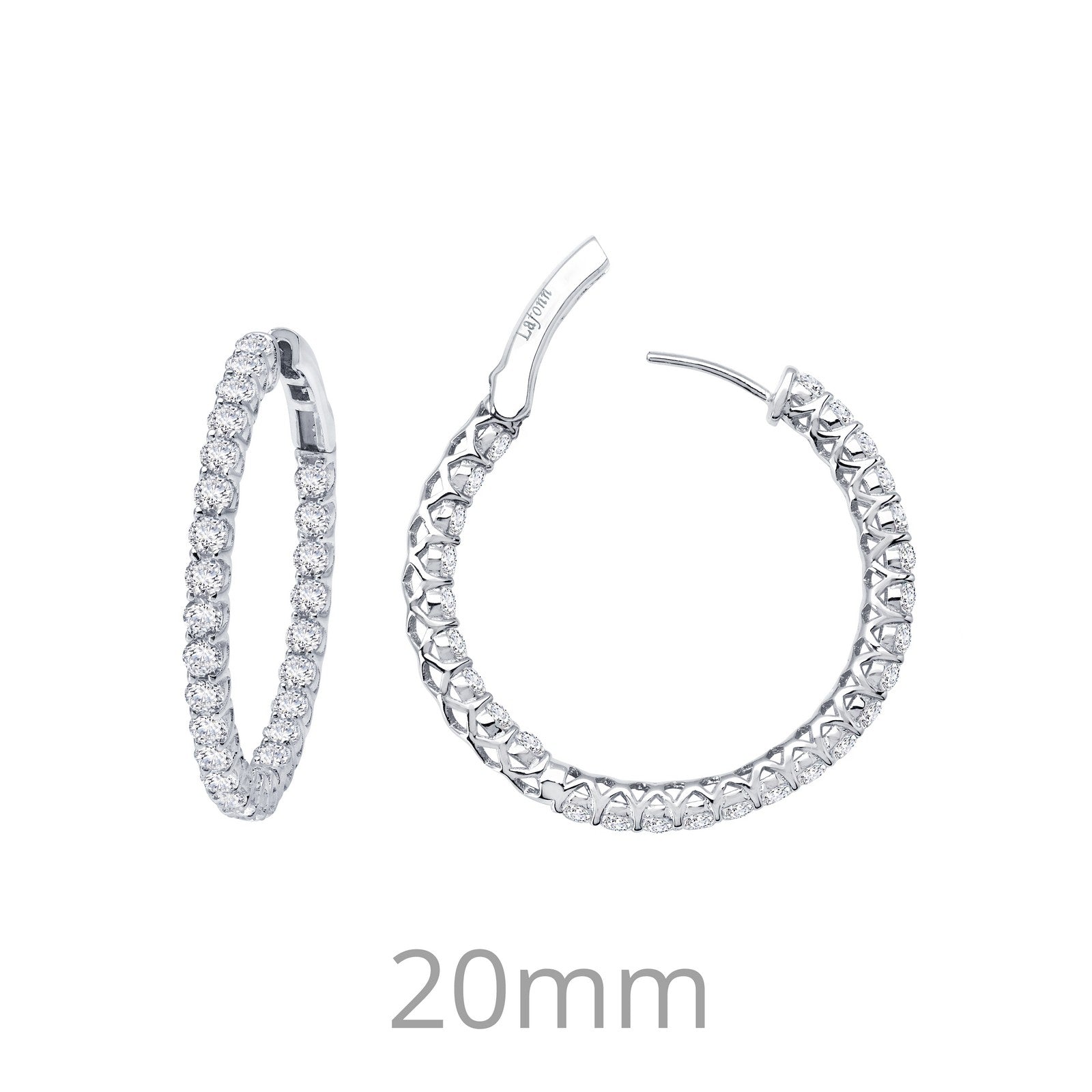 Fun and elegant. These inside out hoop earrings are set with Lafonn's signature Lassaire simulated diamonds in sterling silver using Lafonn's exclusive TR Gold, a new and improved plating process that preserves the rich color of gold and enhances the wearability of our gold-plated styles. 20mm diameter