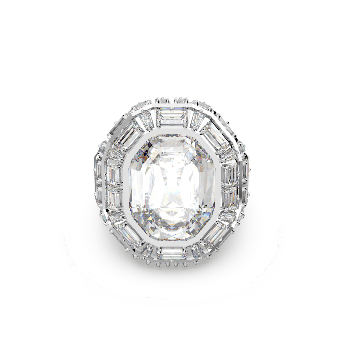Wear this Mesmera ring to put the power of elegance in your hands. The rhodium plated piece features a large octagonal Swarovski Zirconia framed by a luminous array of baguette step-cut crystals. An exquisite display of Swarovski's savoir-faire, this stunning ring makes a wondrous gift and can be paired with matching earrings.
