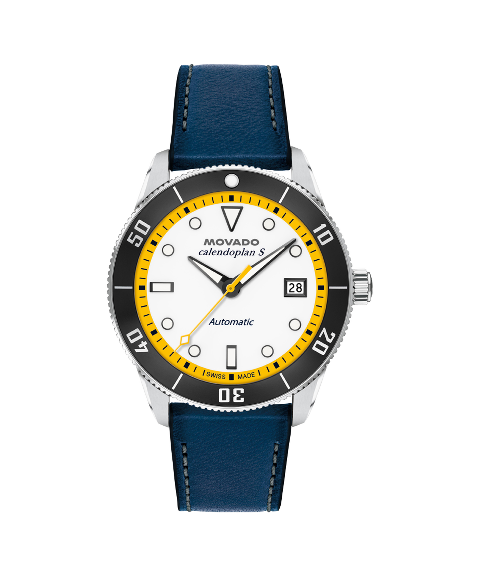The Heritage Series Calendoplan S modernizes our classic 1950's silhouette with a sports edge. A Swiss made self-winding movement drives this watch, powered by the motion of your wrist. This 40mm watch features a white lacquer dial, Swiss Super-LumiNova accents, and a charcoal aluminum bezel.