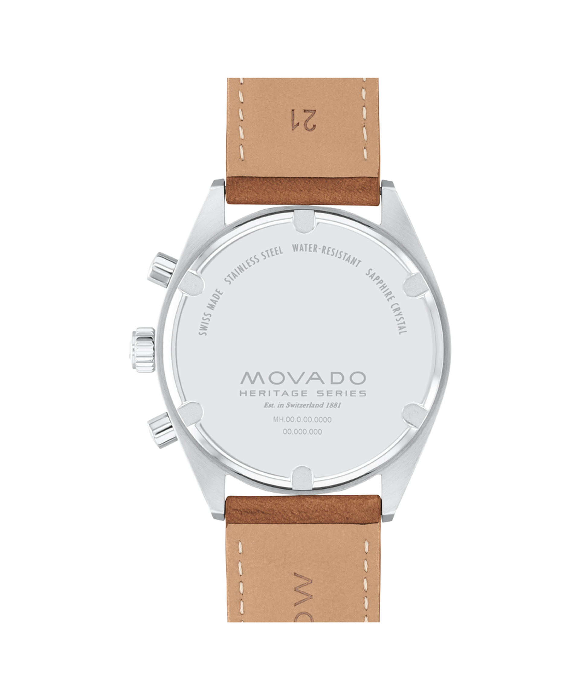 First introduced in the late 1960s, the Heritage Series Datron is a classic mid-century style with a distinctive case. This 41mm chronograph watch features an navy dial with steel subdials, Swiss Super-LumiNova® accents, and a date window.