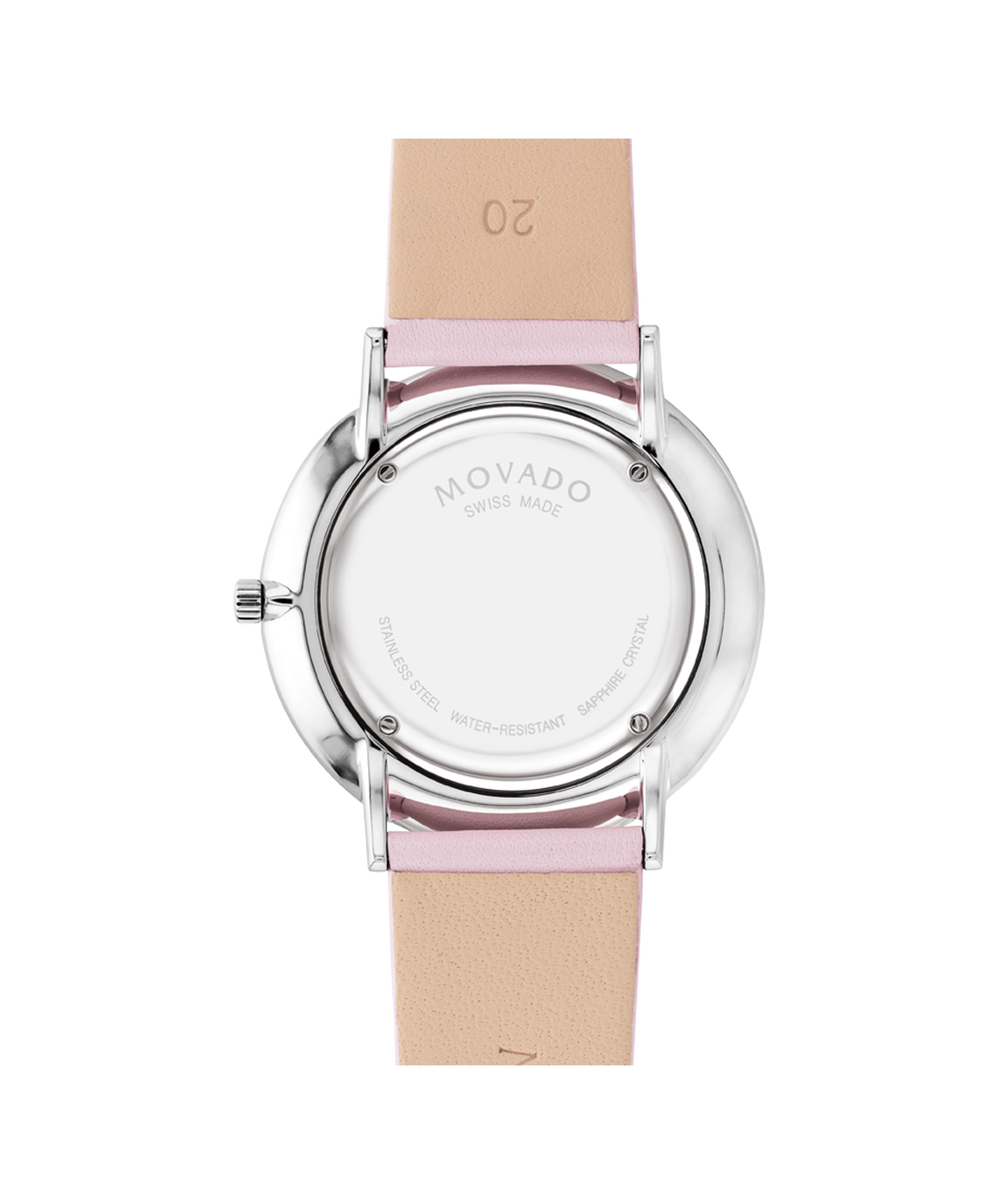 Movado.Com Exclusive - The Modern 47 is a modern exploration of our iconic Museum Dial, introduced in 1947. This 40mm watch features a lavender dial, slim steel hands, and our signature dot at 12 o'clock.