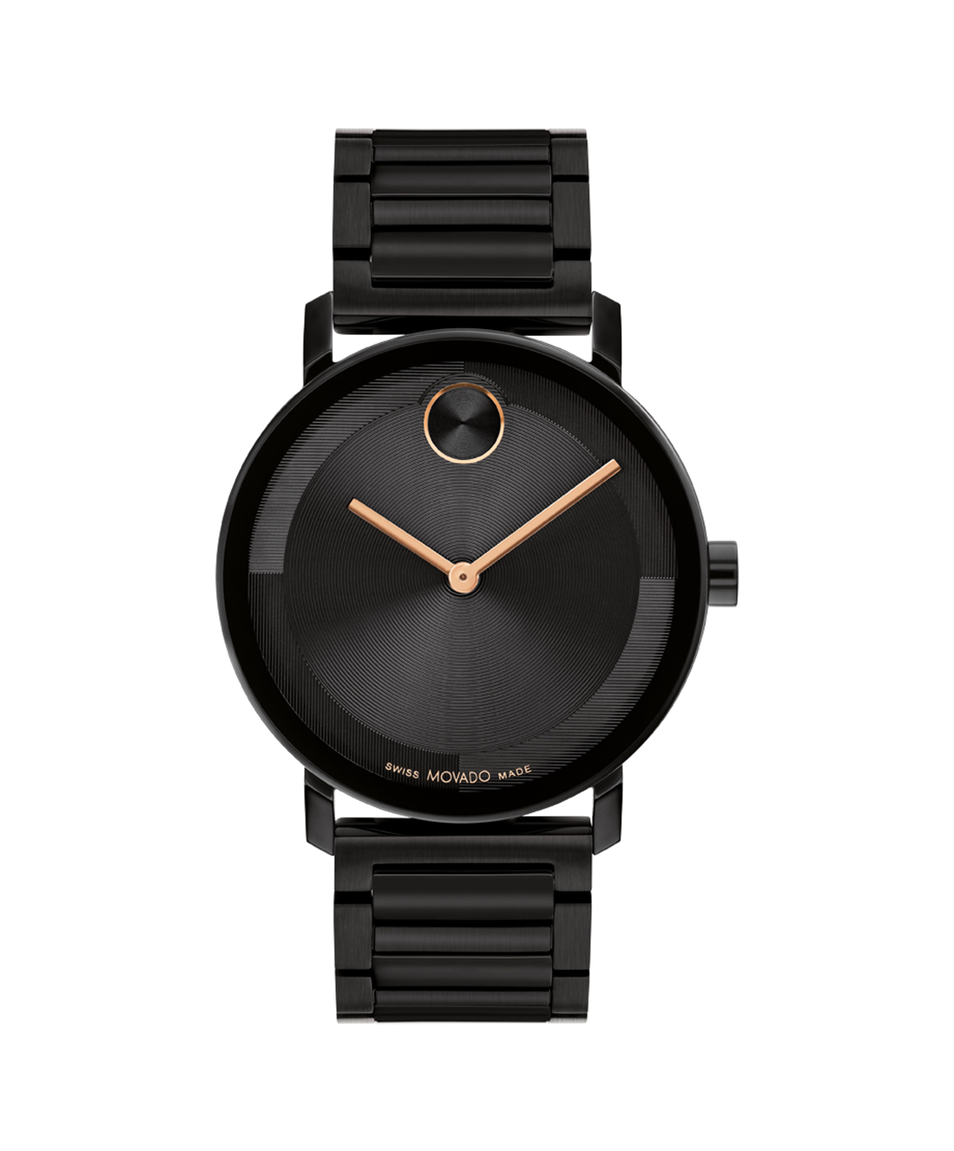The evolution of modern design with a sharp look and elevated feel. Crafted from black ion-plated stainless steel, this sleek timepiece features a statement-making 40mm case that houses a captivating micro-textured tonal dial with a glossy lacquer overlay, slim hands, and our iconic dot motif at 12 o’clock.