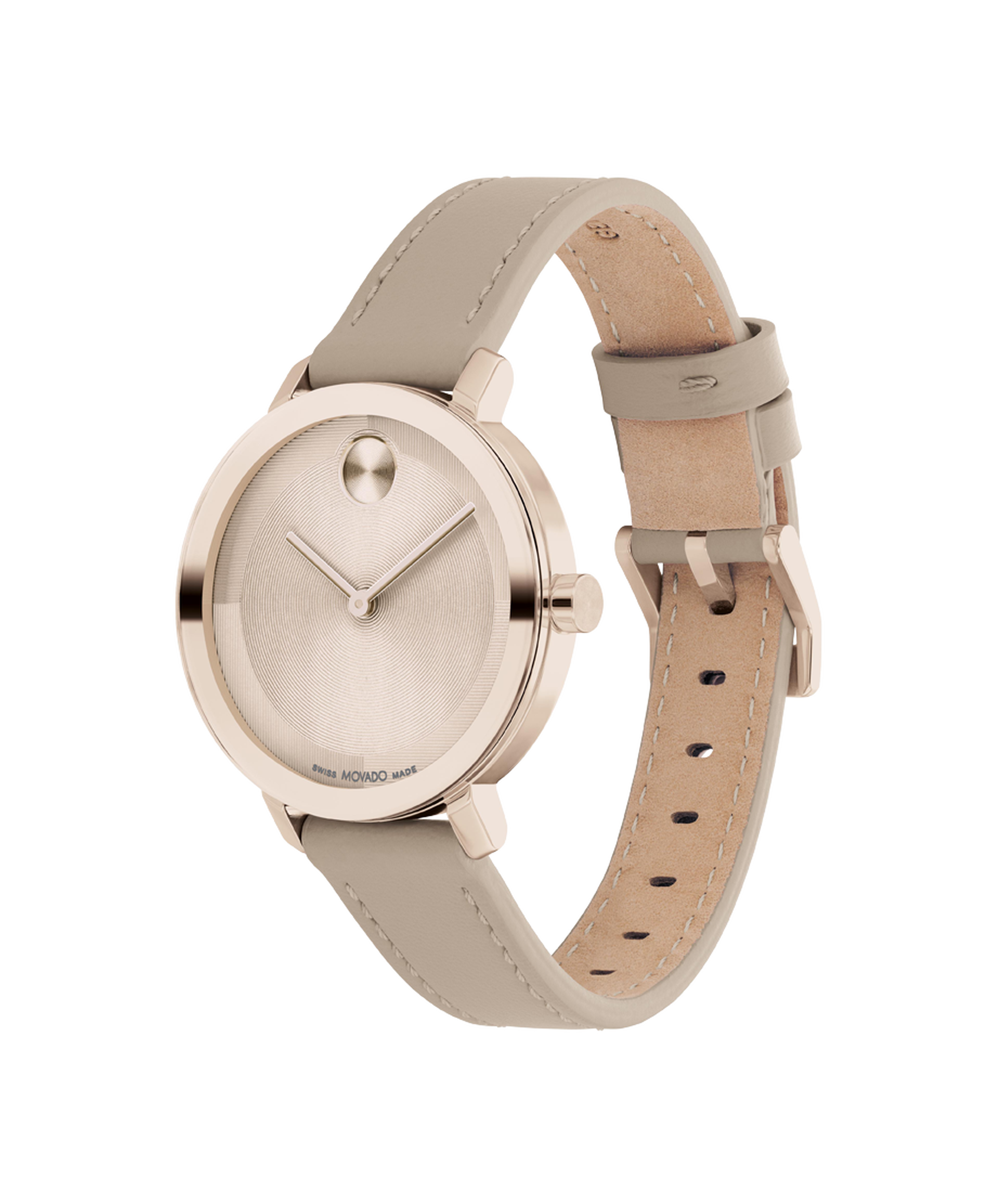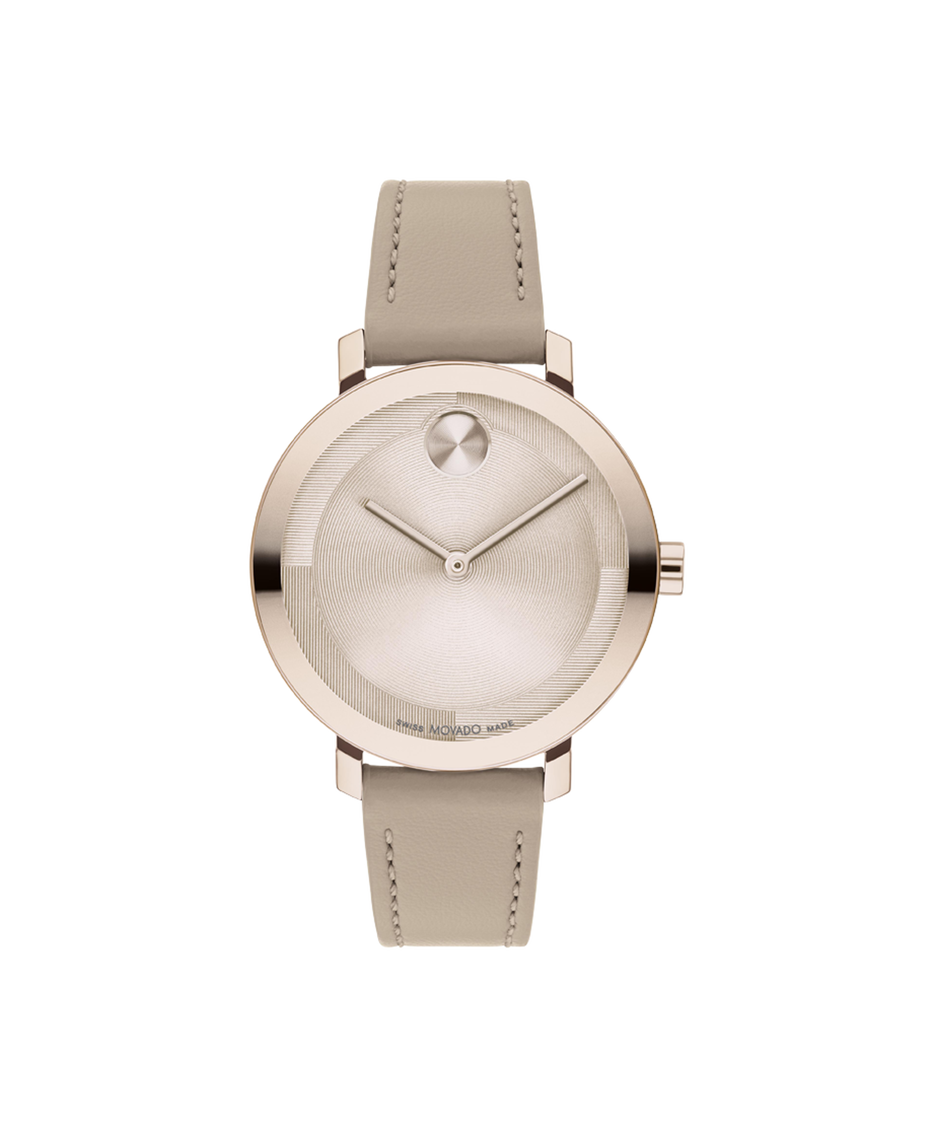 The evolution of modern design with a sharp look and elevated feel. Crafted from beige gold ion-plated stainless steel, this sleek timepiece features a statement-making 34mm case that houses a captivating micro-textured dial with a glossy lacquer overlay, slim hands, and our iconic dot motif at 12 o’clock.