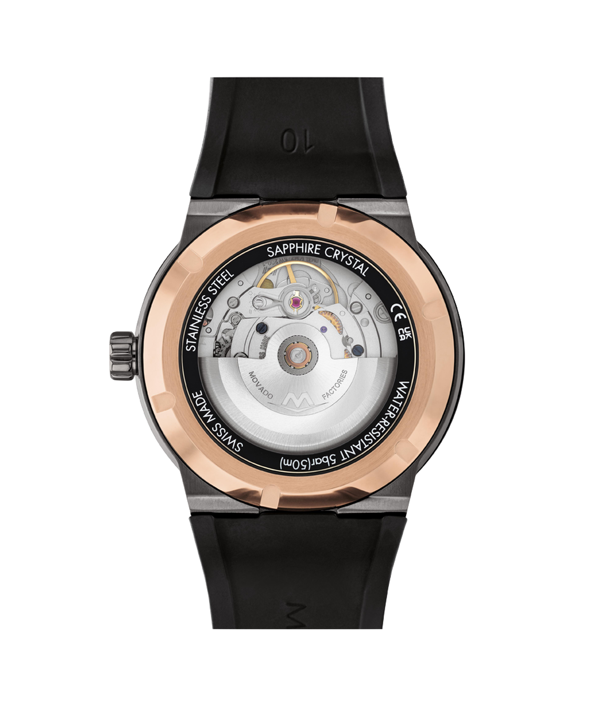 The BOLD Fusion Automatic is defined by a bold, sporty case and a modern edge. A Swiss made automatic movement drives this watch, powered by the motion of your wrist. This 44mm watch features a black exhibition dial with a rose goldtone centerzone, Swiss Super-LumiNova accents, and an exhibition case back.