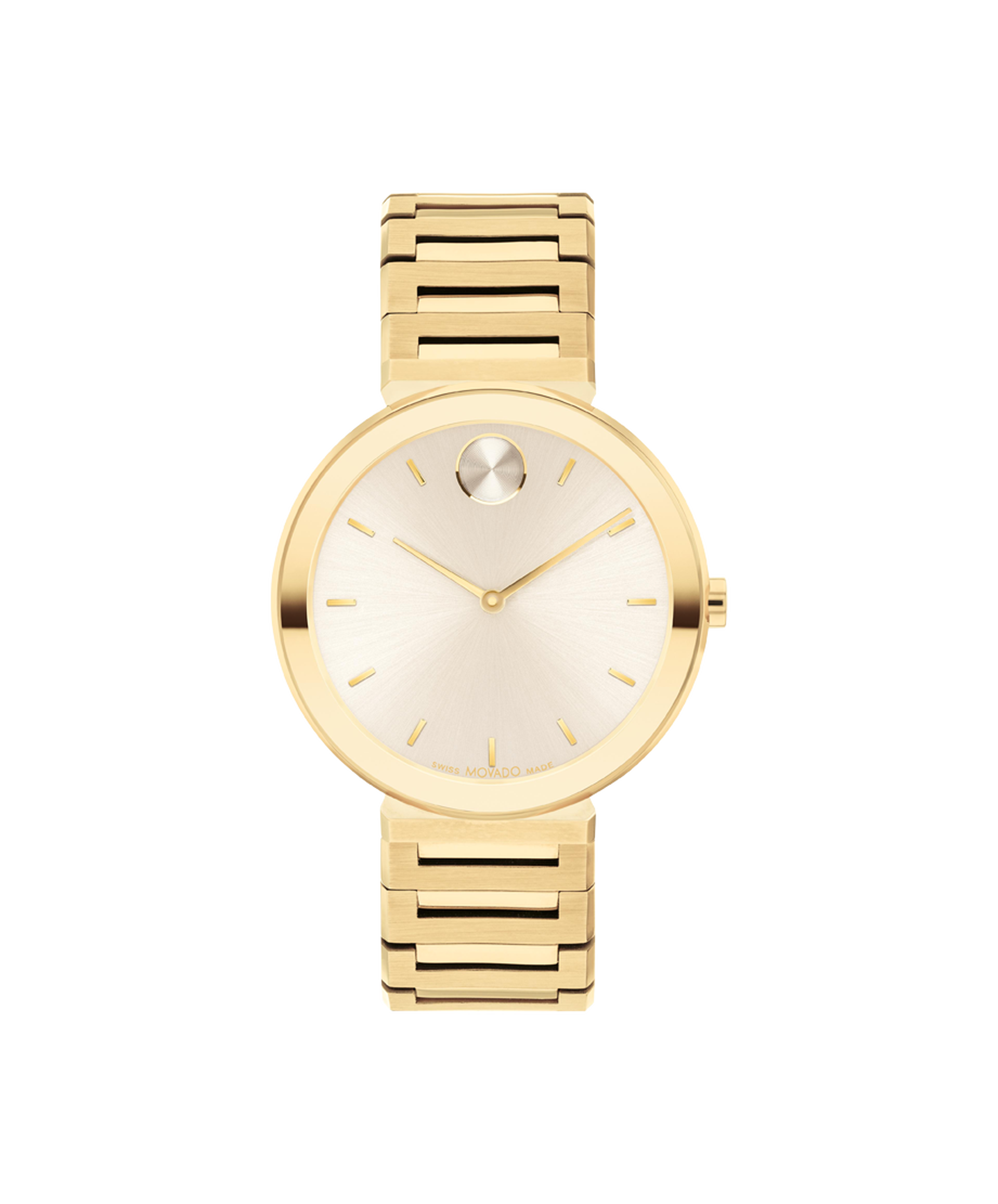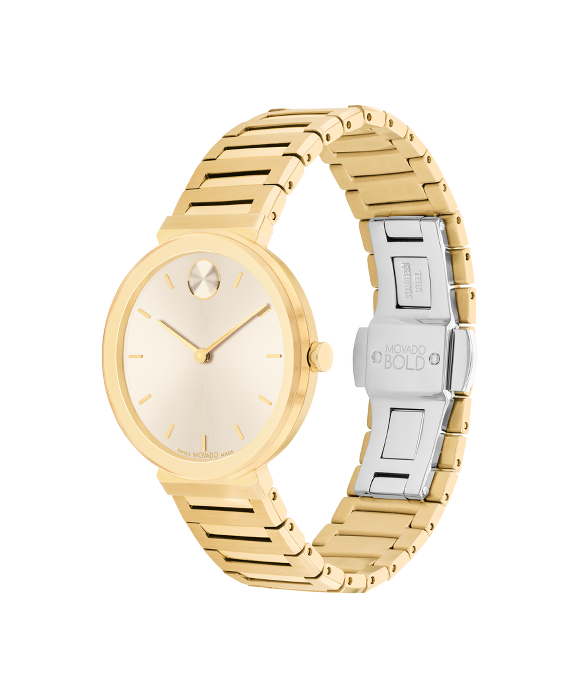 Refining sleek, contemporary style in an ultra-thin design. The 34mm case of this sophisticated watch is only 6.5mm thick, creating a super sleek silhouette. This timepiece is crafted from pale yellow gold ion-plated stainless steel and features a matching Y-link bracelet and chalk dial with pale yellow gold-toned accents.