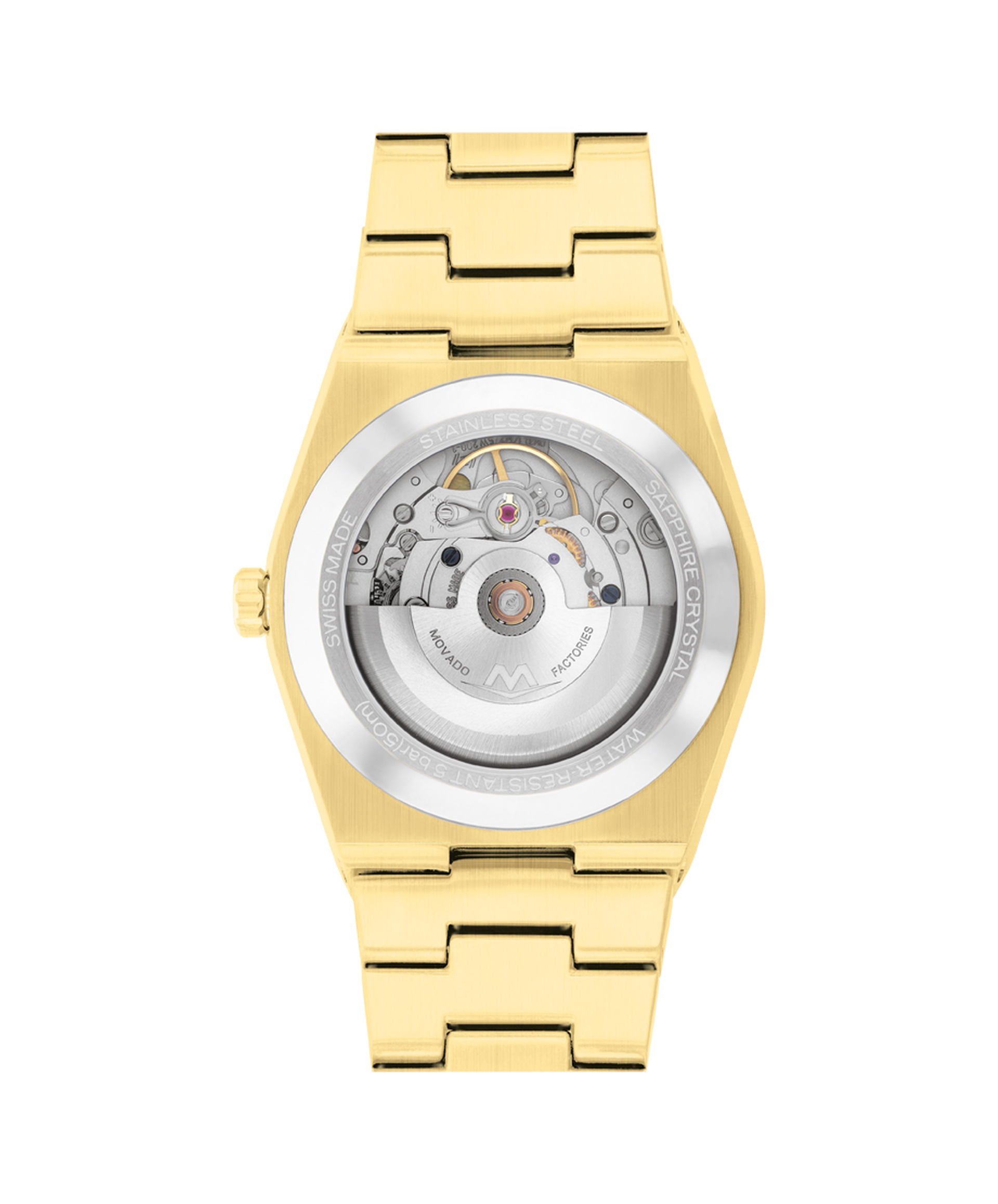 The BOLD Quest Automatic looks to the future with a shaped case and an integrated bracelet. A Swiss made self-winding movement drives this watch, powered by the motion of your wrist. This 39mm watch features a white dual texture dial, yellow gold-tone hands, an exhibition case back, and our signature dot at 12 o'clock.