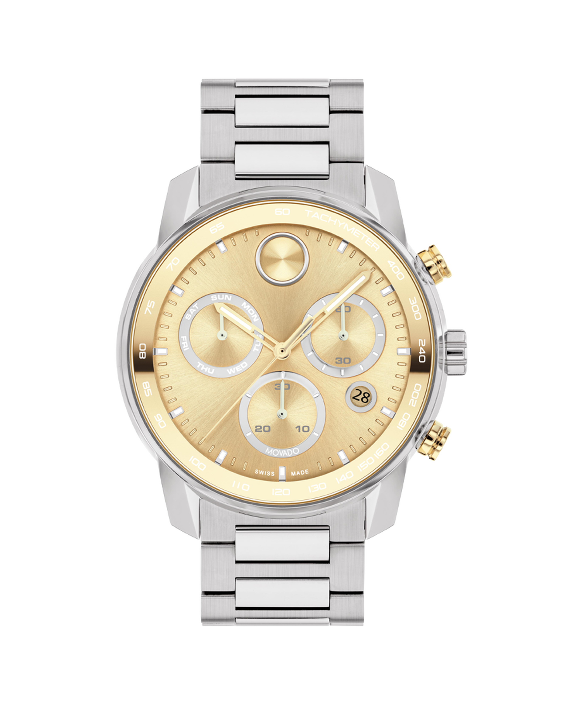 The sporty, eternally stylish chronograph gets a fresh feel with a strong, contemporary design that combines modern minimalism and a bold edge. The classic bracelet and statement-making 44mm case are cast in shimmering stainless steel for a flawlessly refined finish.