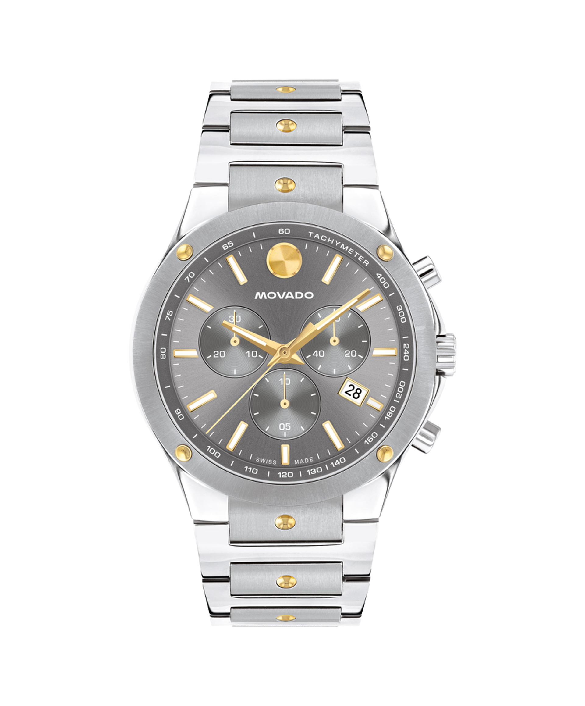The Movado SE is defined by Swiss craftsmanship and sport-elegant design. This 42mm chronograph watch features a grey sunray dial, Swiss Super-LumiNova accents, and our signature dot motif.