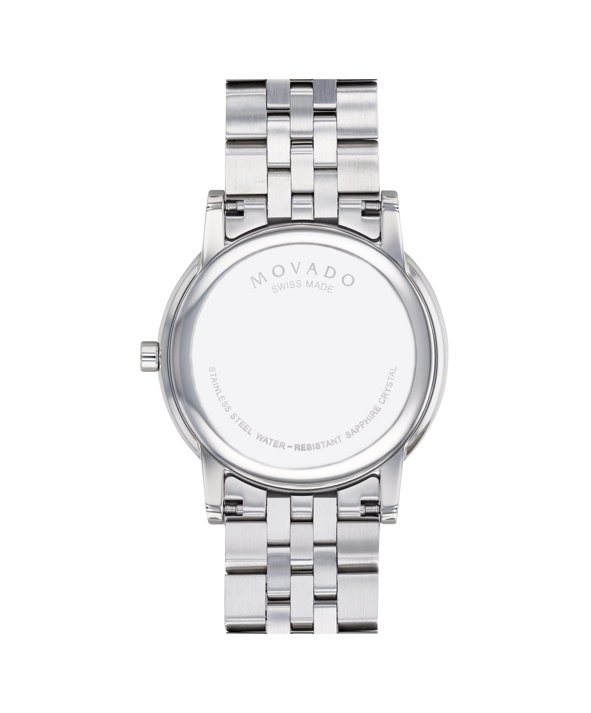 Men's Museum Classic watch, 40 mm stainless steel case, round black dial with 11 diamond markers (0.043 t.c.w.) and silver-toned dot and hands, stainless steel link bracelet with deployment clasp.