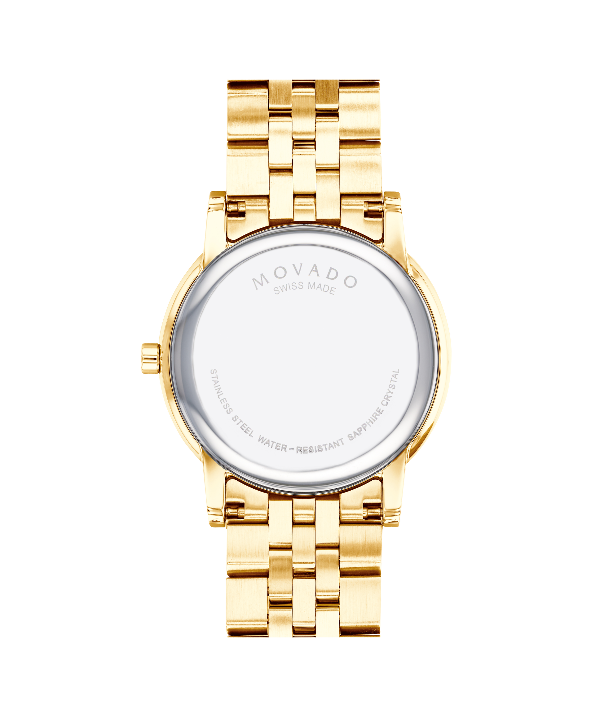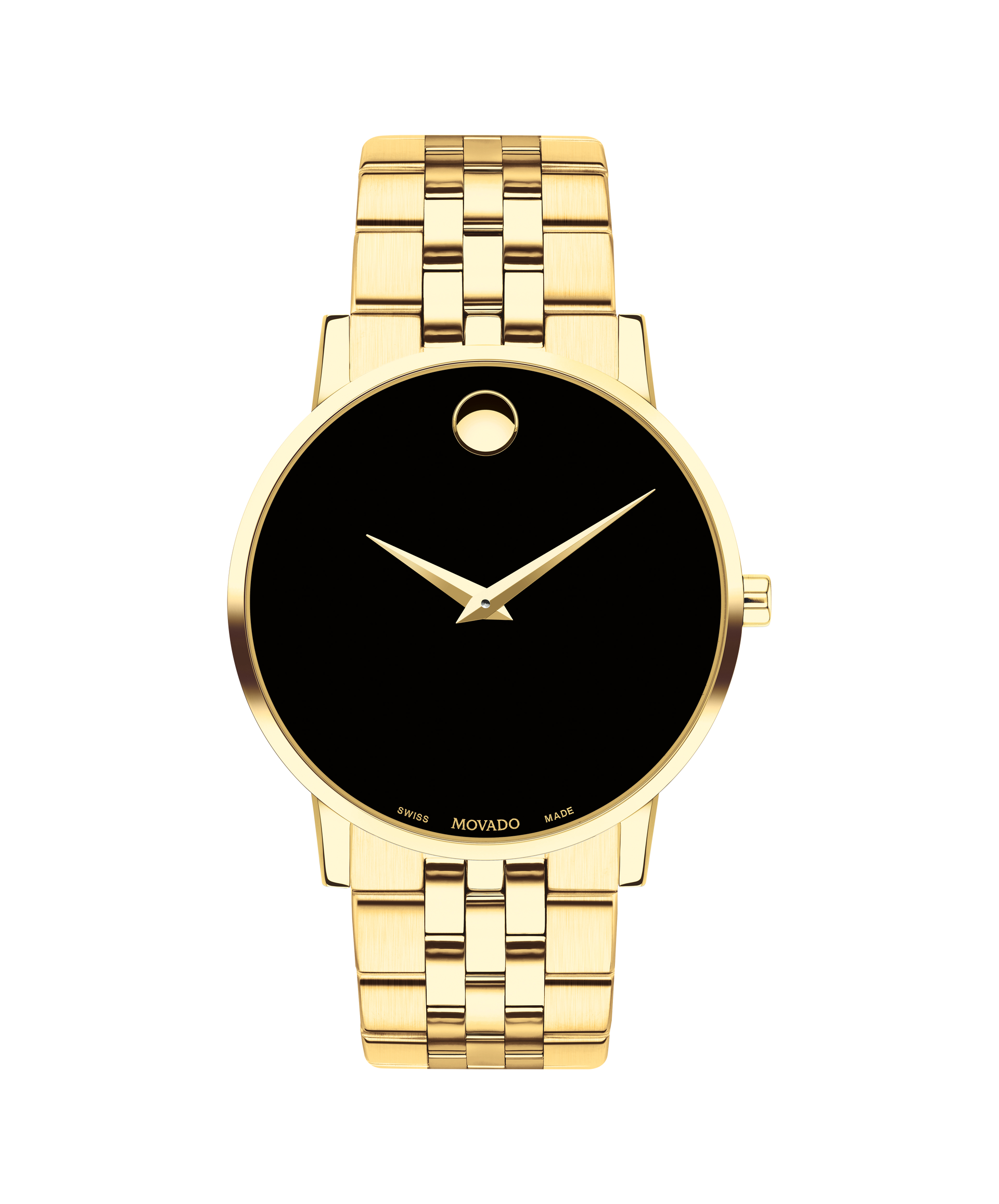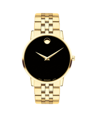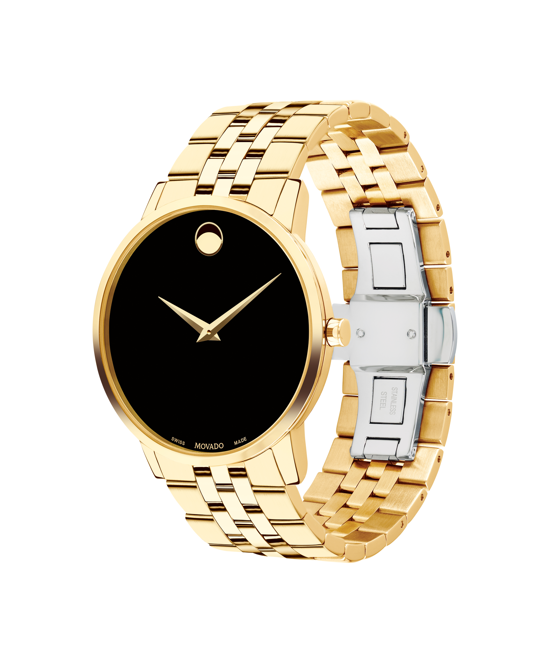 Men's Museum Classic watch, 40 mm yellow gold PVD-finished stainless steel case, black Museum dial with gold-toned dot and hands, yellow gold PVD-finished stainless steel link bracelet with deployment clasp.